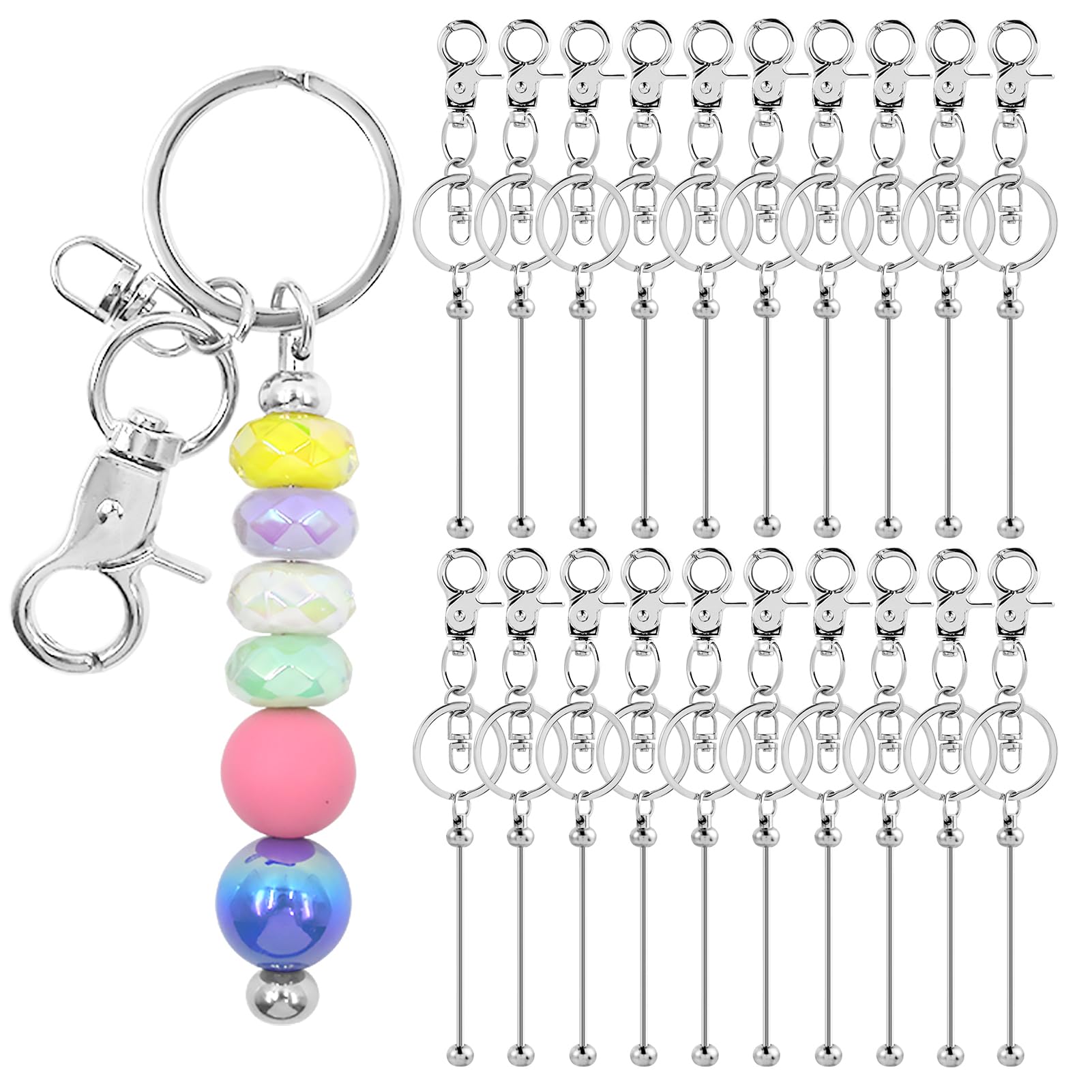 20 Pcs Beadable Keychains Bulk Kit – DIY Keychain Making Supplies with Metal Blanks for Crafts, Jewelry, Charms, Custom Projects – Blank Chain Bars for Beaded Keychain Design (Colourful)