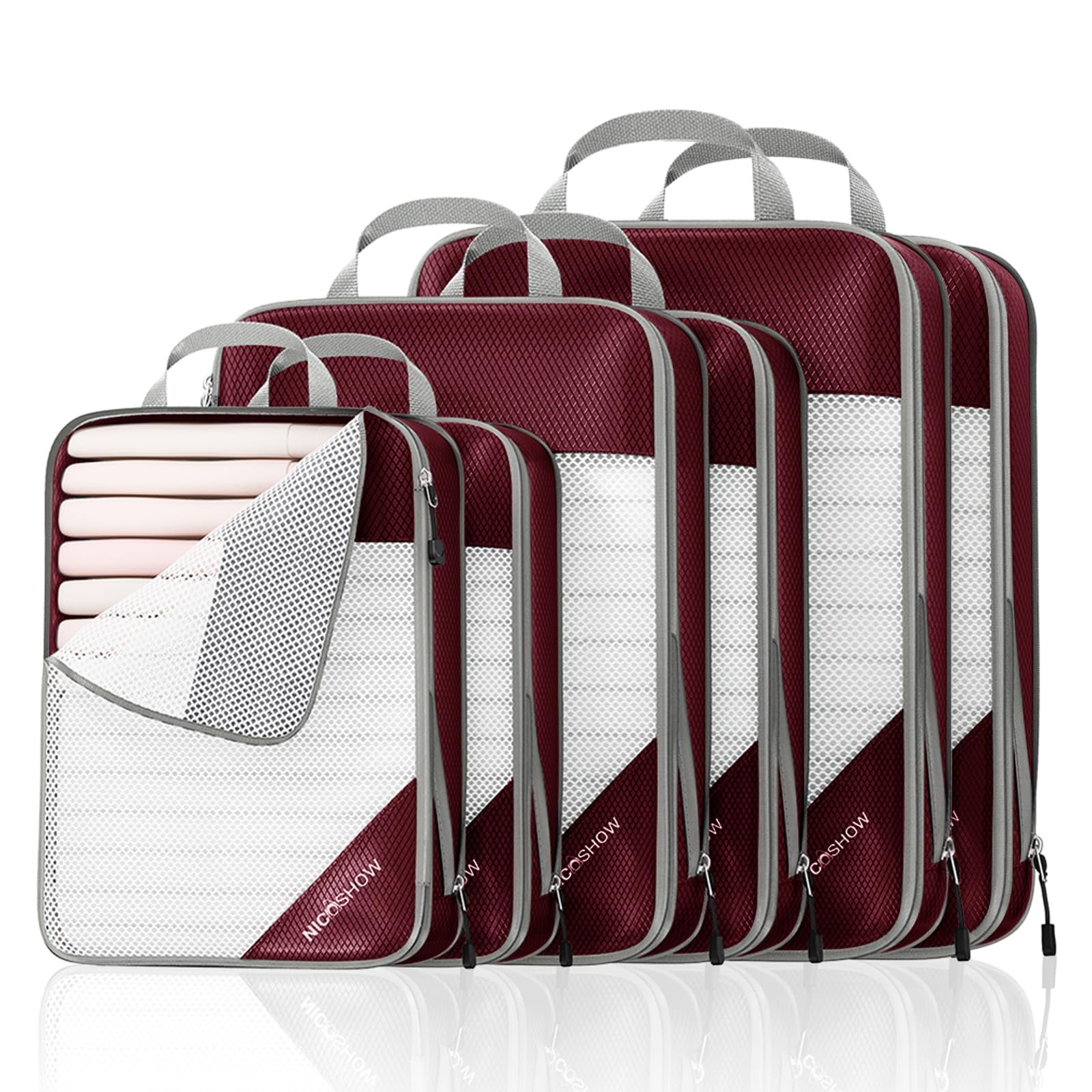 6 Set Compression Packing Cubes for Travel - Compressible, Lightweight, and Space-Saving Packing Cubes, Travel Essentials for Women, Grey