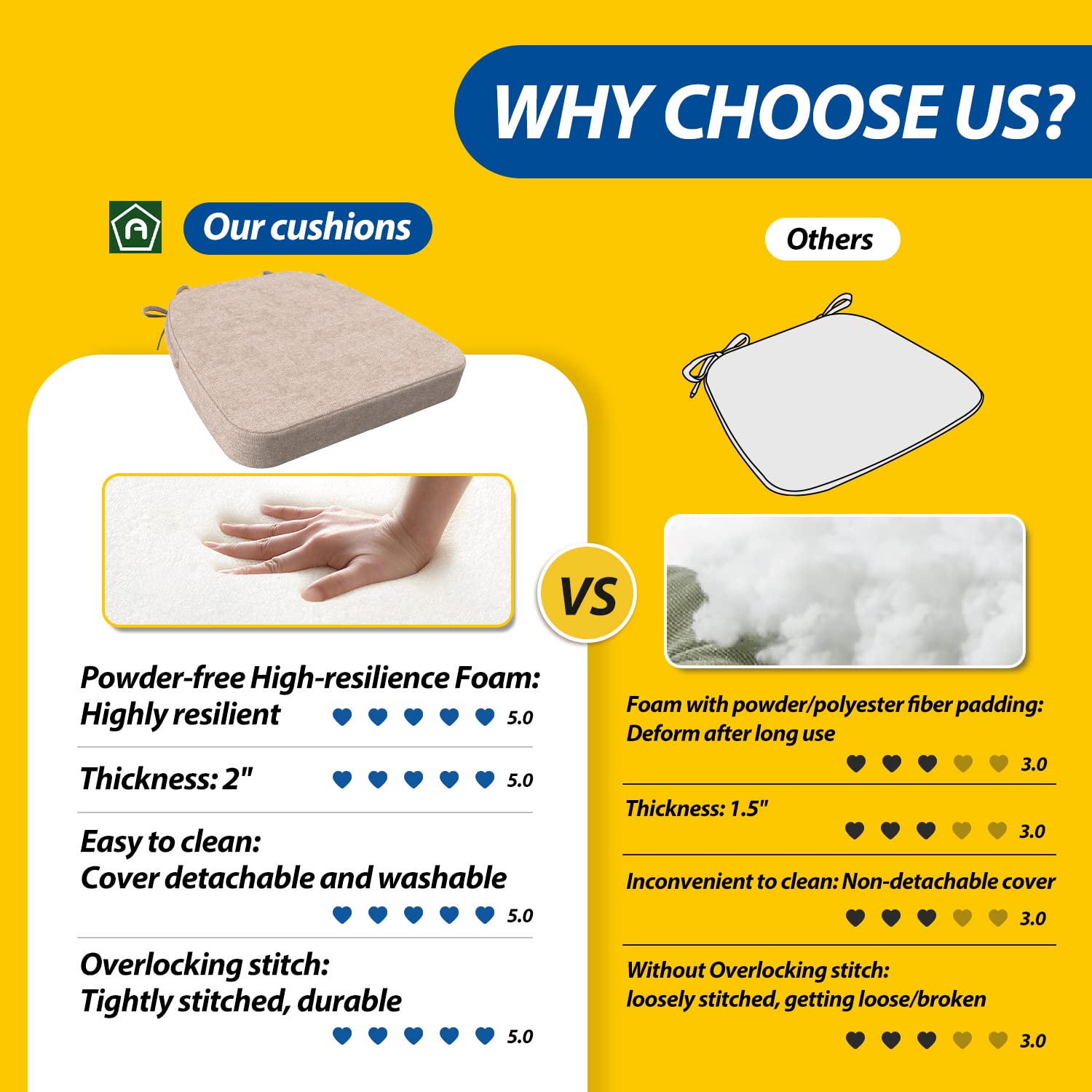 - Comfy & Ergonomic Support: Our powder-free high-resilience cushion foam is a leading filling that has excellent resilience and durability and can offer even support. Therefore, the D-shaped chair cushion, 2' in thickness, can provide a comfy surface and ergonomic support, protecting your tailbone, reducing pressure, and relaxing your muscles. With it, no more hard chair surfaces, and no more constantly adjusting your sitting posture to relieve the stiffness of sitting long.