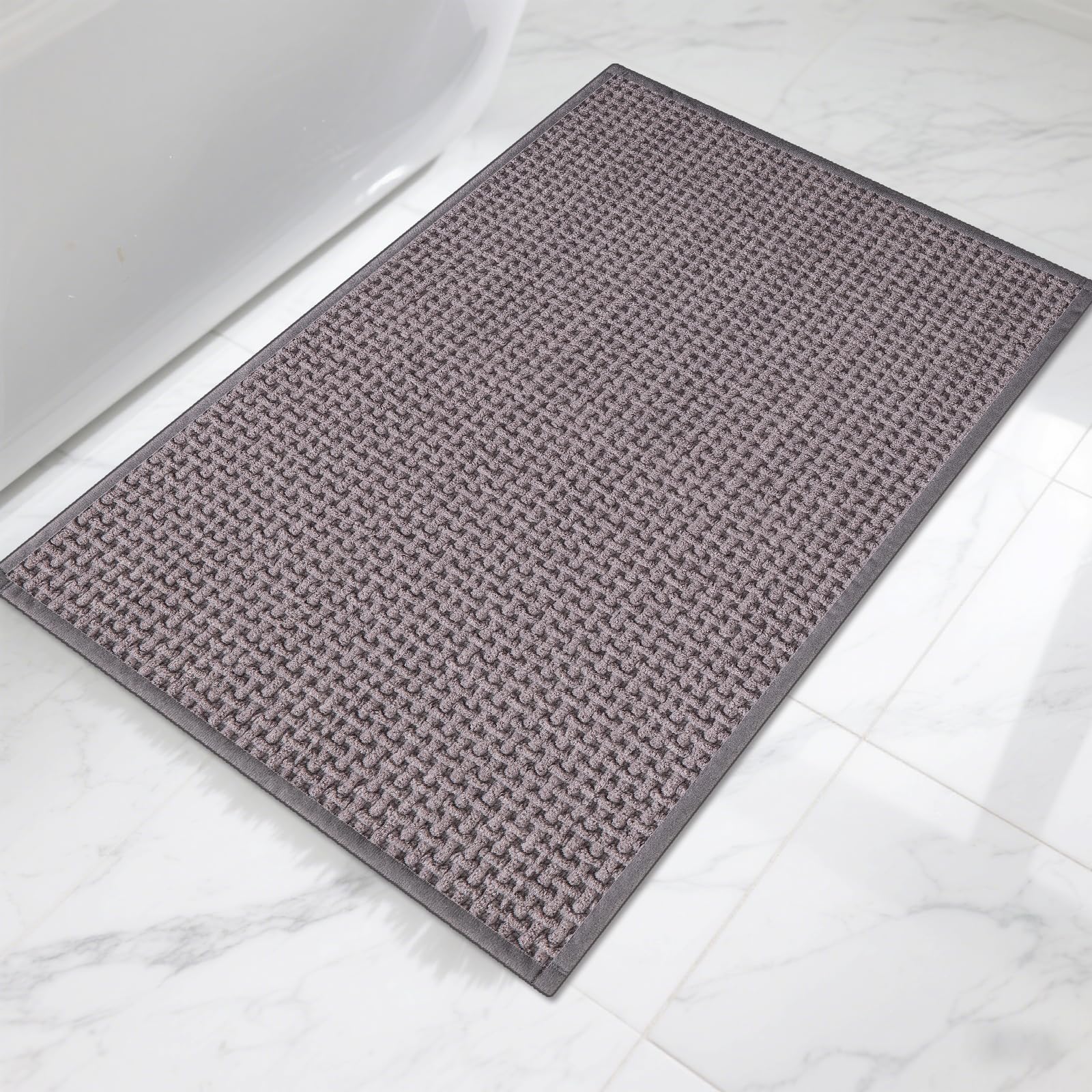 Bathroom Rugs Non Slip Washable, Super Absorbent Thin Bath Mat for Small Quick Dry Low Pile Bathroom Rug, (Navy Blue, 24″x16″)
