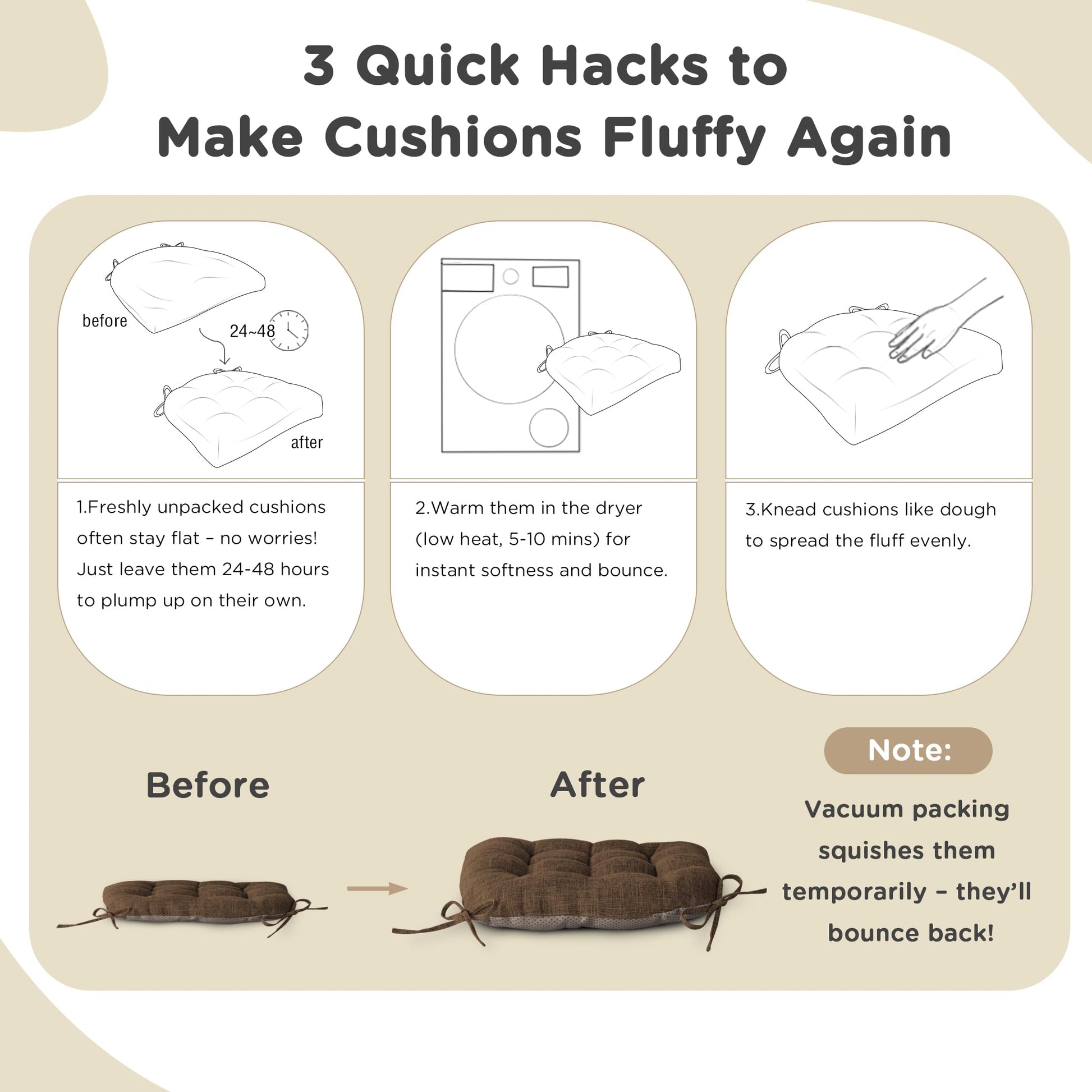 - [Multi - purpose seat Cushion] This cushion can be used as a dining chair cushion in the dining room, an office chair cushion, or a floor cushion. It is available in a variety of solid colors, making it suitable for various scenarios. When you receive it, the cushion may be deformed due to compression. Just gently pat and knead it, and it will return to its original shape. Put it in a dryer for 15 minutes to make it rebound more quickly.