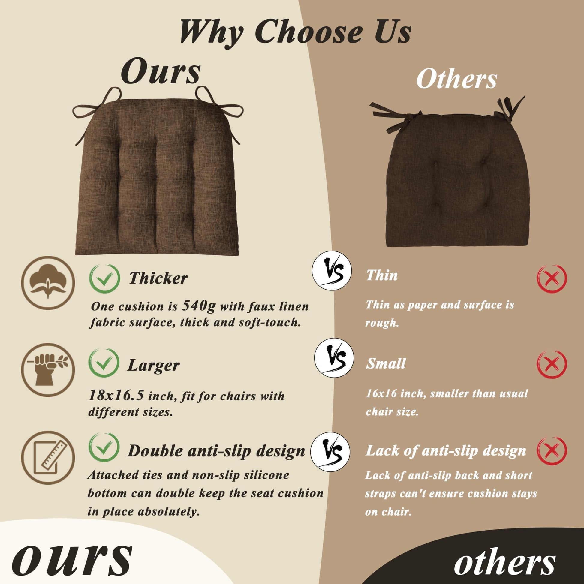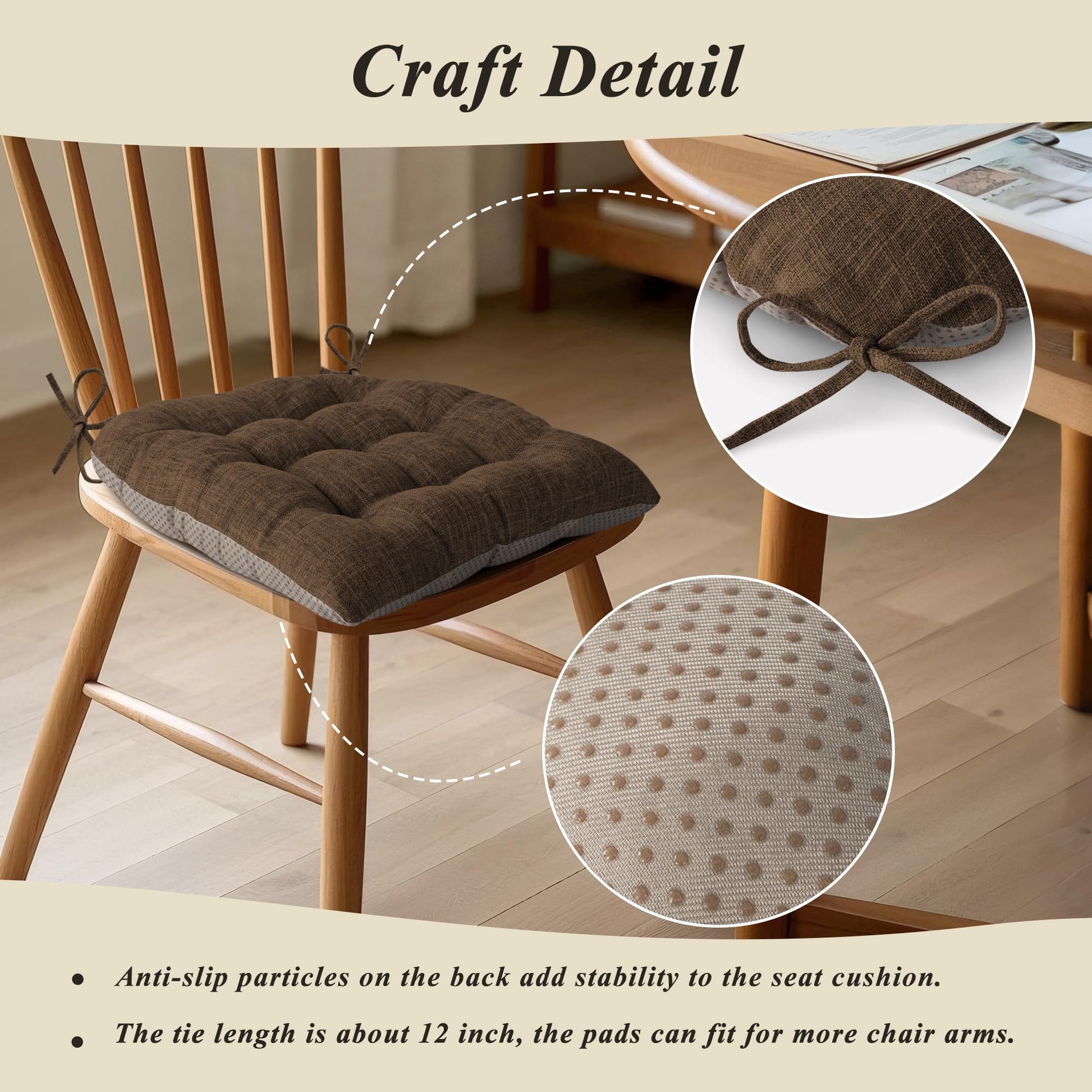 FlyGulls Chair Cushions for Dining Chairs Set of 4 Durable D-Shaped Seat Cushions with Non-Slip Backing Secure Ties Thick Cozy Seat Pad for Kitchen Dining Room Office(18x16.5x3in Coffee)