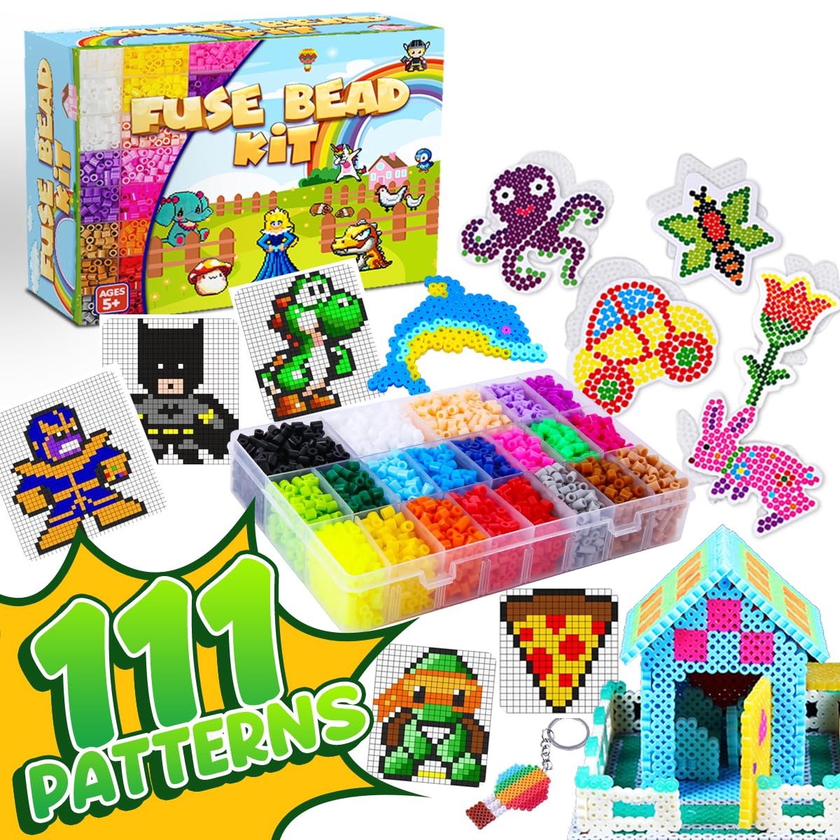 Goody King Board Fuse Beads Iron Set - Fuse Beads Kit for Kids Crafts with Bead Pegboard and Aqua Pony Beads, Pixel Art and Craft Bead Kit (Large Set with Iron)