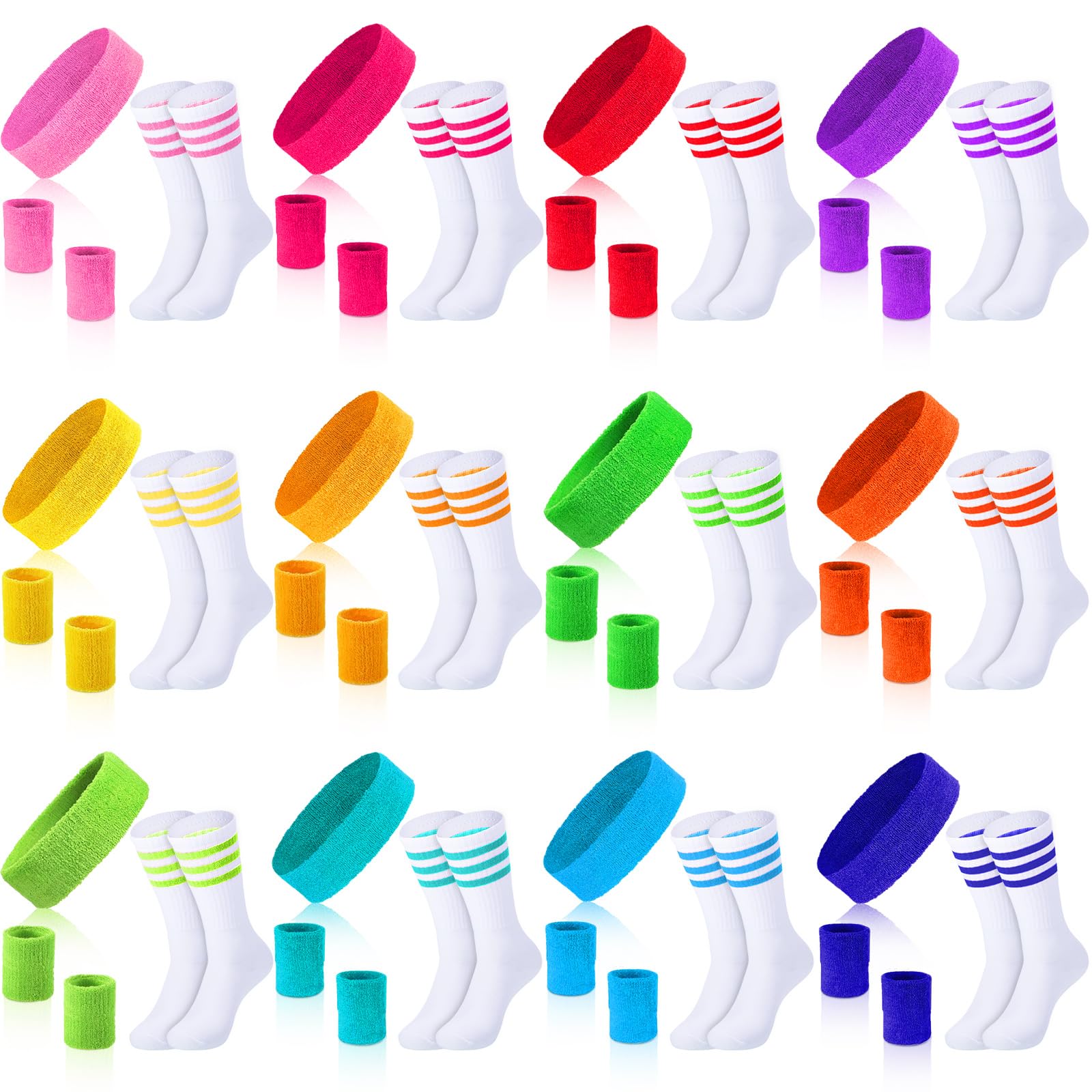 Hillban 80s Neon Sweatbands Wristband and Socks 80s Accessories for Women Men Neon Headband Workout Outfit