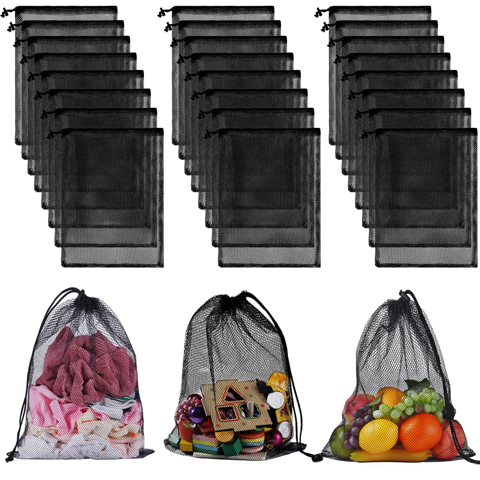 iMucci 12Pcs Mesh Bag 13"X15.5" Drawstring Gym Bag Nylon Mesh Drawstring Bag with Cord Lock Closure for Collecting Toys Travel Sports