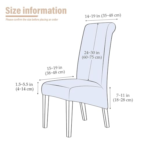 - High Elasticity for Perfect Fit: Designed with super stretch fabric, this chair cover fits most standard high back dining room chairs snugly without slipping. Seat length and width: 15-19', back height: 24-30'. The high elasticity ensures a smooth, wrinkle-free appearance while accommodating various chair shapes. Whether for wooden, plastic, or metal chairs, it stays securely in place