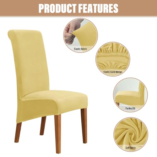 Lussenwert Velvet Dining Chair Covers Stretch XL/Oversized Chair Covers for Dining Room Set of 6 Parsons Chair Slipcovers Removable Washable Chair Seat Protector for Kitchen Banquet, Lemon-Yellow