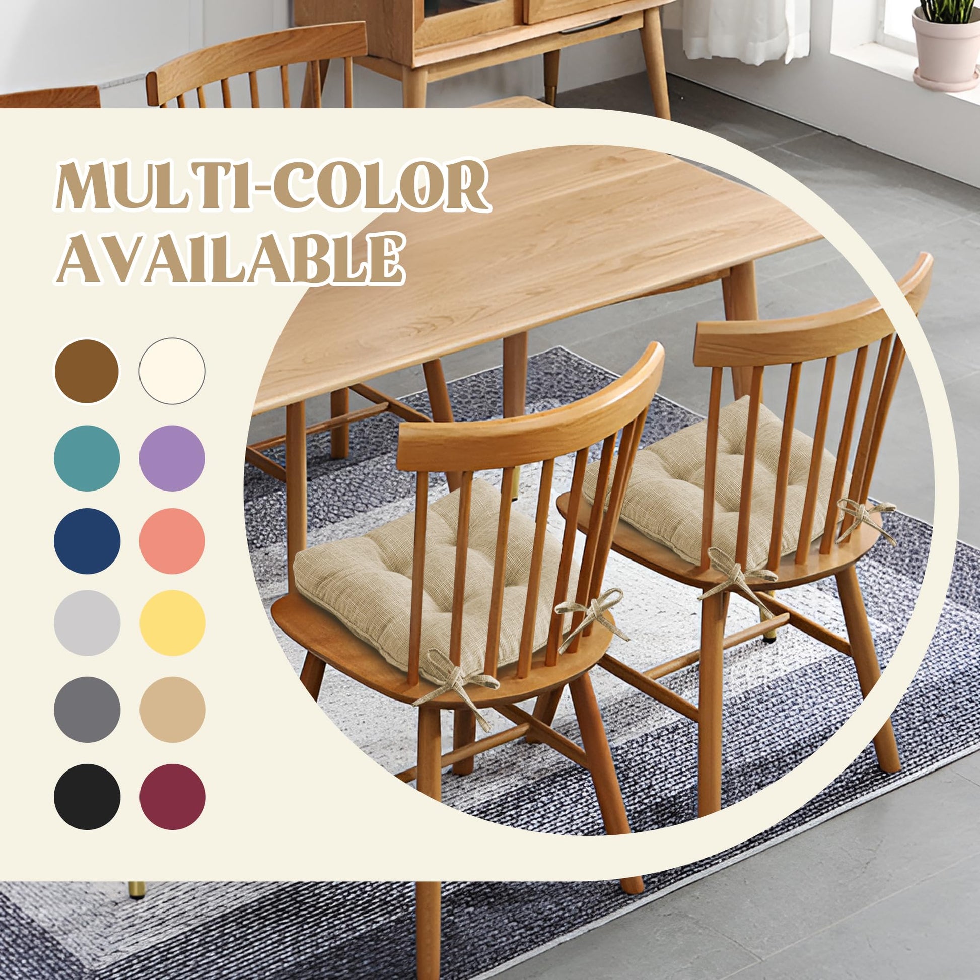 puredown® Chair Cushions for Dining Chairs, Tufted Memory Foam Chair Pads with Non-Slip Backing, Kitchen Seat Cushions with Ties, Washable Seat Pad Set of 4, 15.5" x 15.5" x 4", Khaki