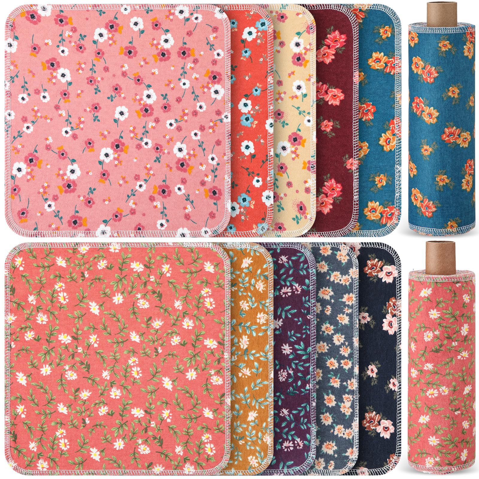 Redbaker 50 Pcs Reusable Paper Towels Paperless Reusable Cotton Cloths Toilet Absorbent Washable Paper Towels with Roll Kitchen Dishcloth for Kitchen Paperless Dishcloths(Classic)