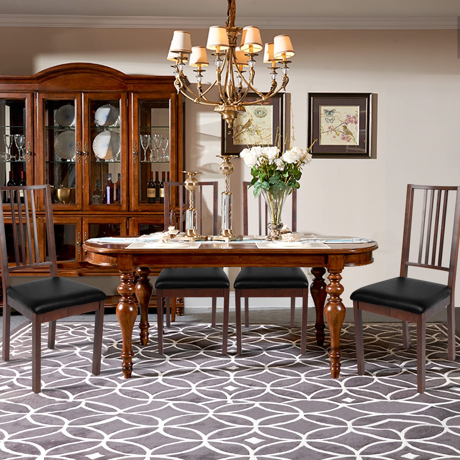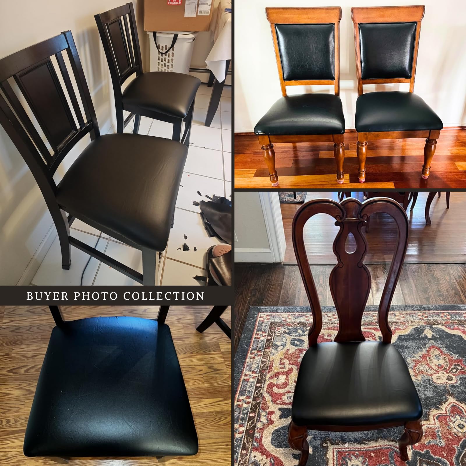 SearchI Waterproof PU Leather Seat Covers for Dining Chairs, 6 Pack Stretch Dining Room Chair Seat Covers, Kitchen Chair Seat Covers Protectors (Black)