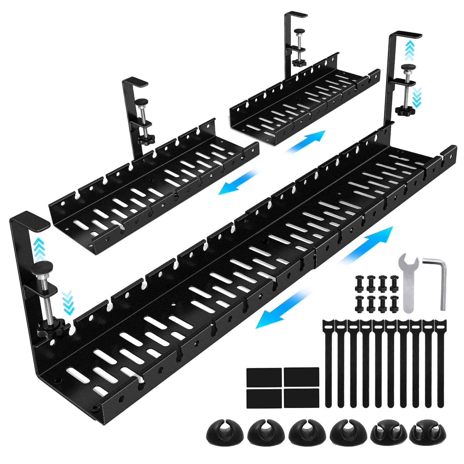 Shikha Under Desk Cable Tray, 15.7"-30.7" Retractable Under Desk Cable Management, No Drilling Cord Organizer with Clamp, Wire Management for Home Office -White