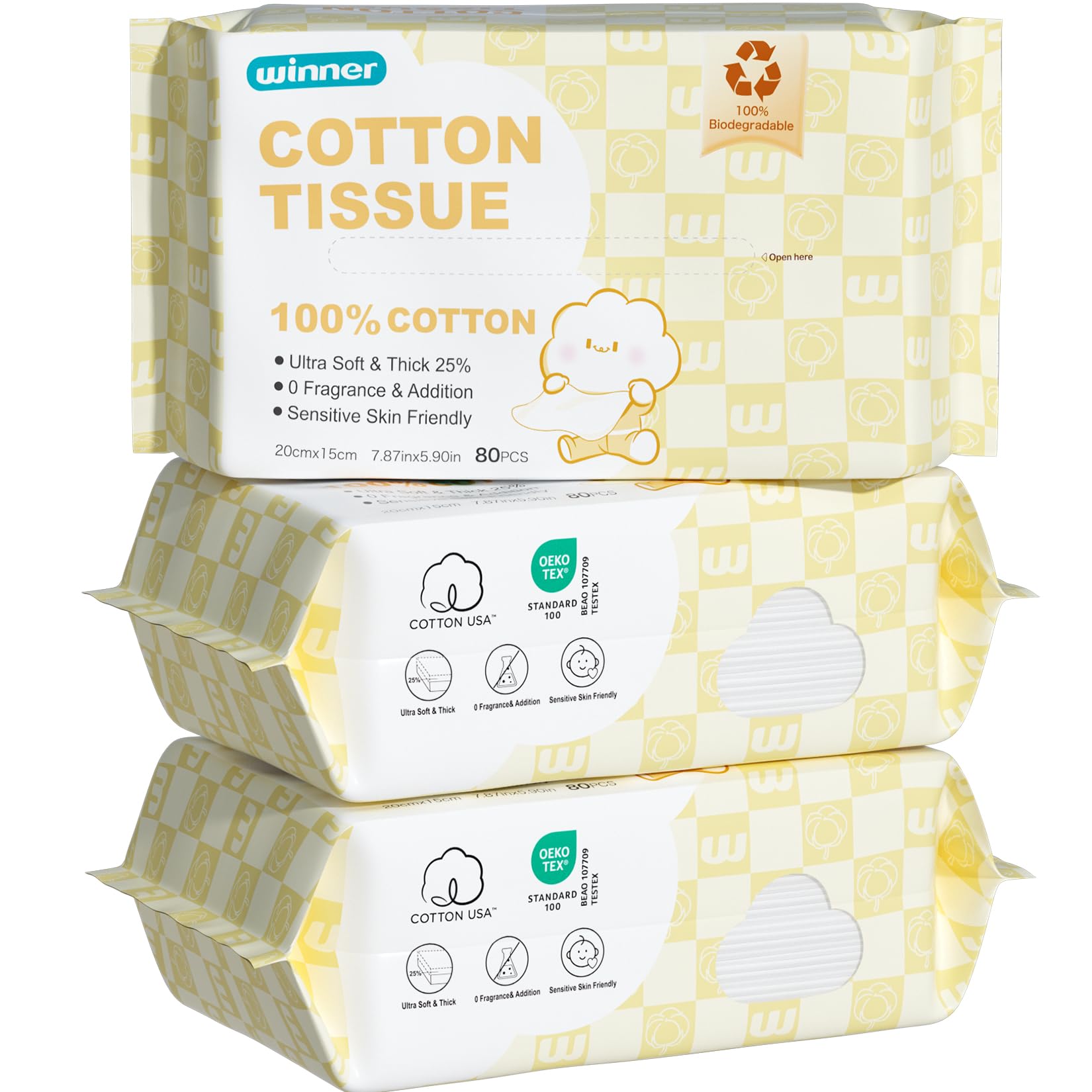 Winner 100% USDA Biobased Dry Wipes, 600 Count Ultra Soft Cotton Face Towels, Wet and Dry Use, Unscented and Hypoallergenic, Baby Necessities for Diaper Changes, Meals, and On-the-go Cleanup