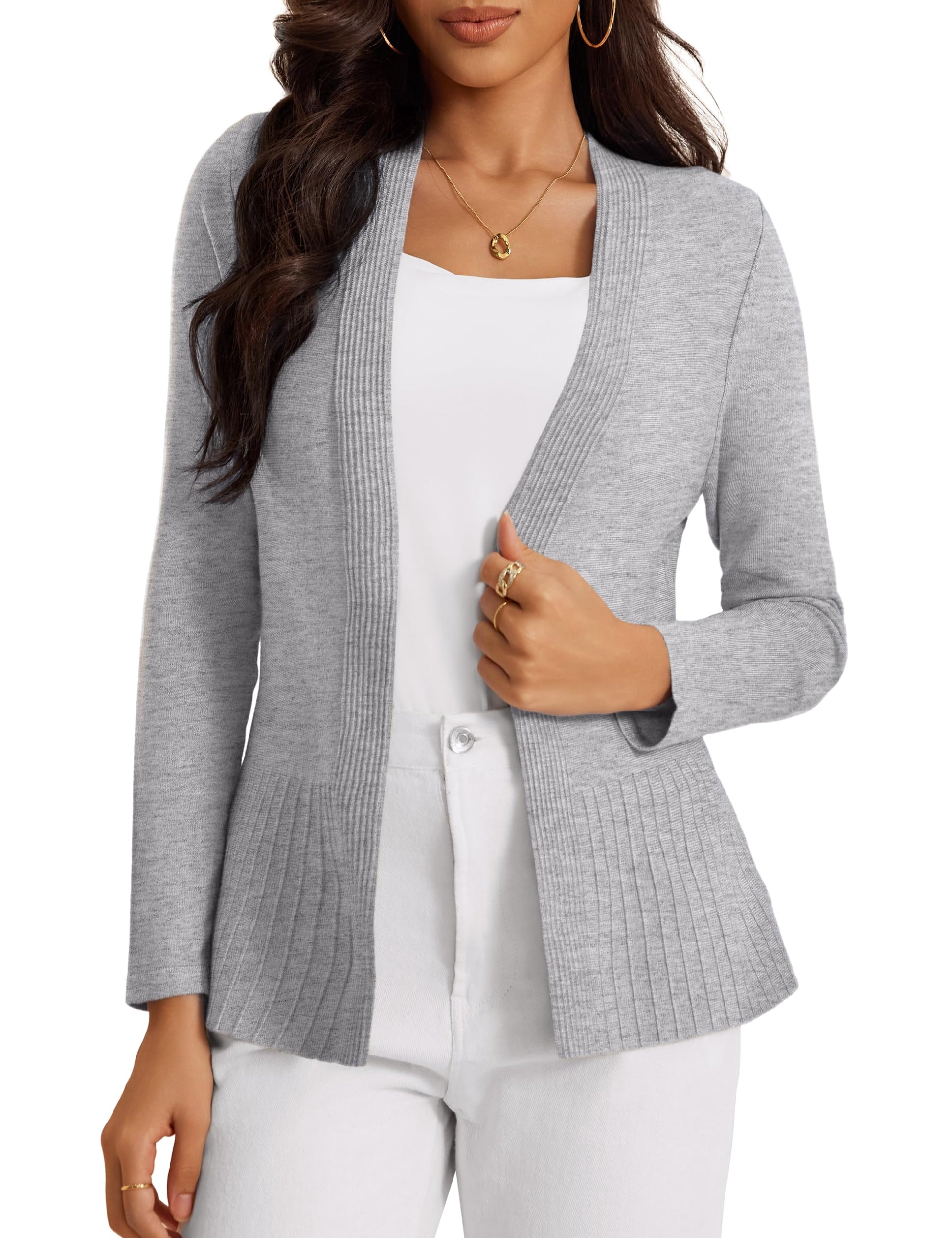 Suéter casual con frente abierto para mujer, cárdigan de punto acanalado de manga larga