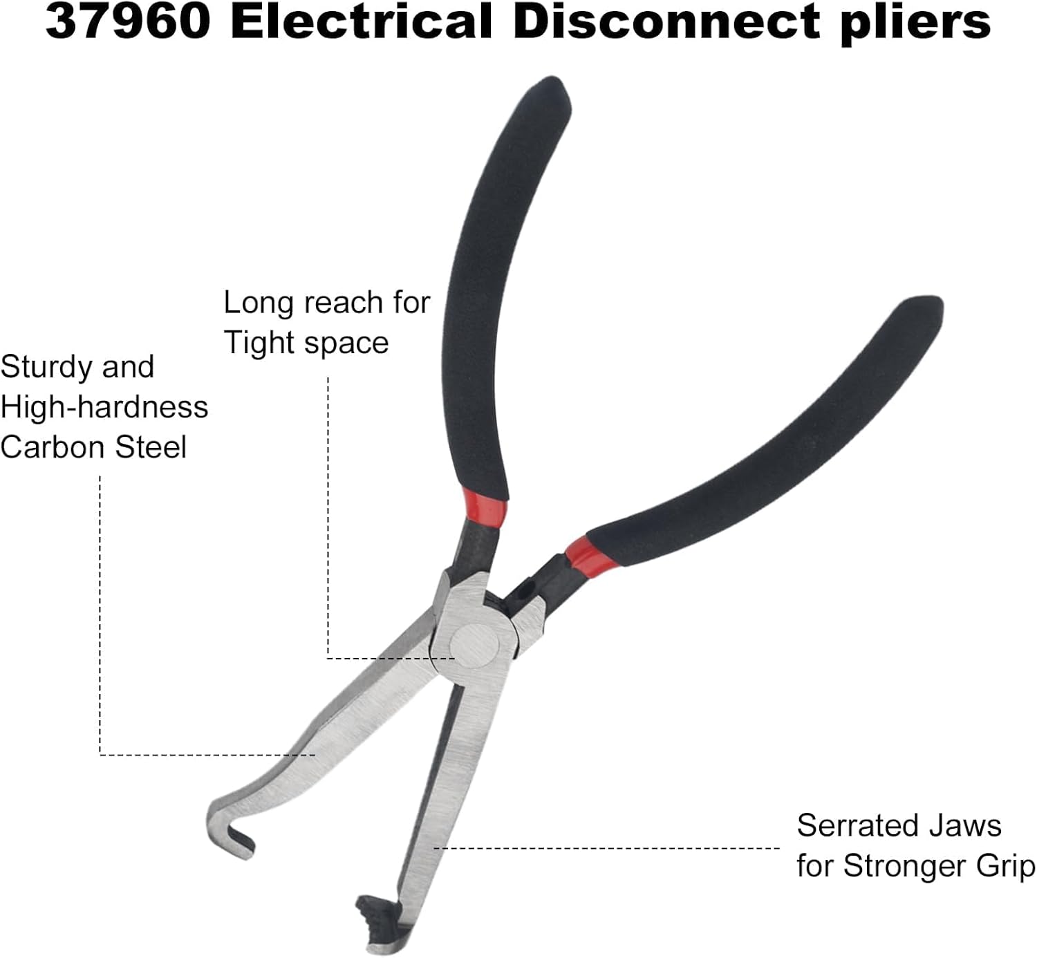 8" Electrical Disconnect Pliers Set 60°Connector Tool Angled Wire Plug Tool Locking Push Tab Pliers for Sensor Plugs Fuel Injectors Wiring Harnesses Removal 37960,37980 (3 Piece Set)