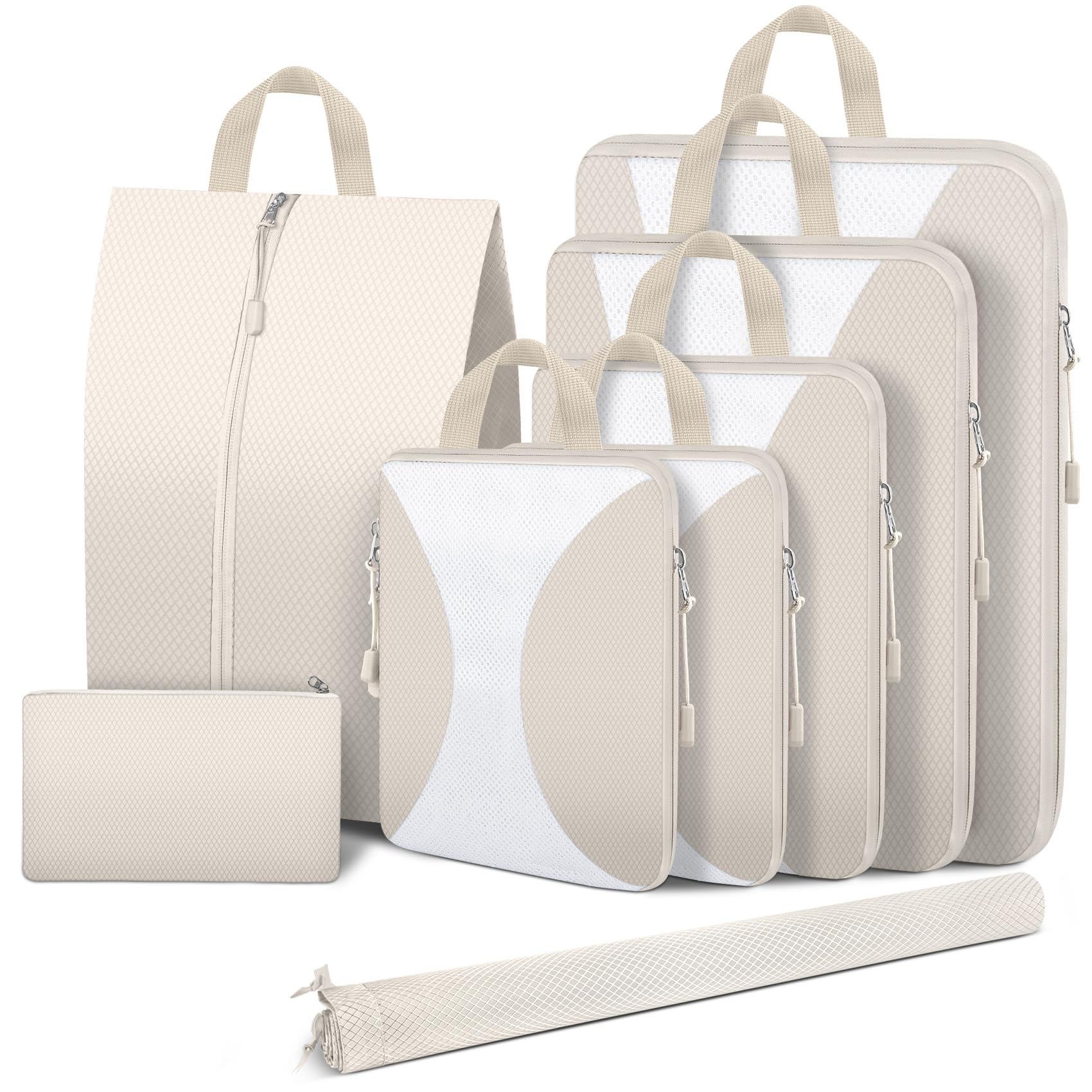 8 Set Compression Packing Cubes for Travel, Packing Cubes Compression Travel Accessories Expandable Packing Organizers for Carry on Luggage Suitcase (Gray)