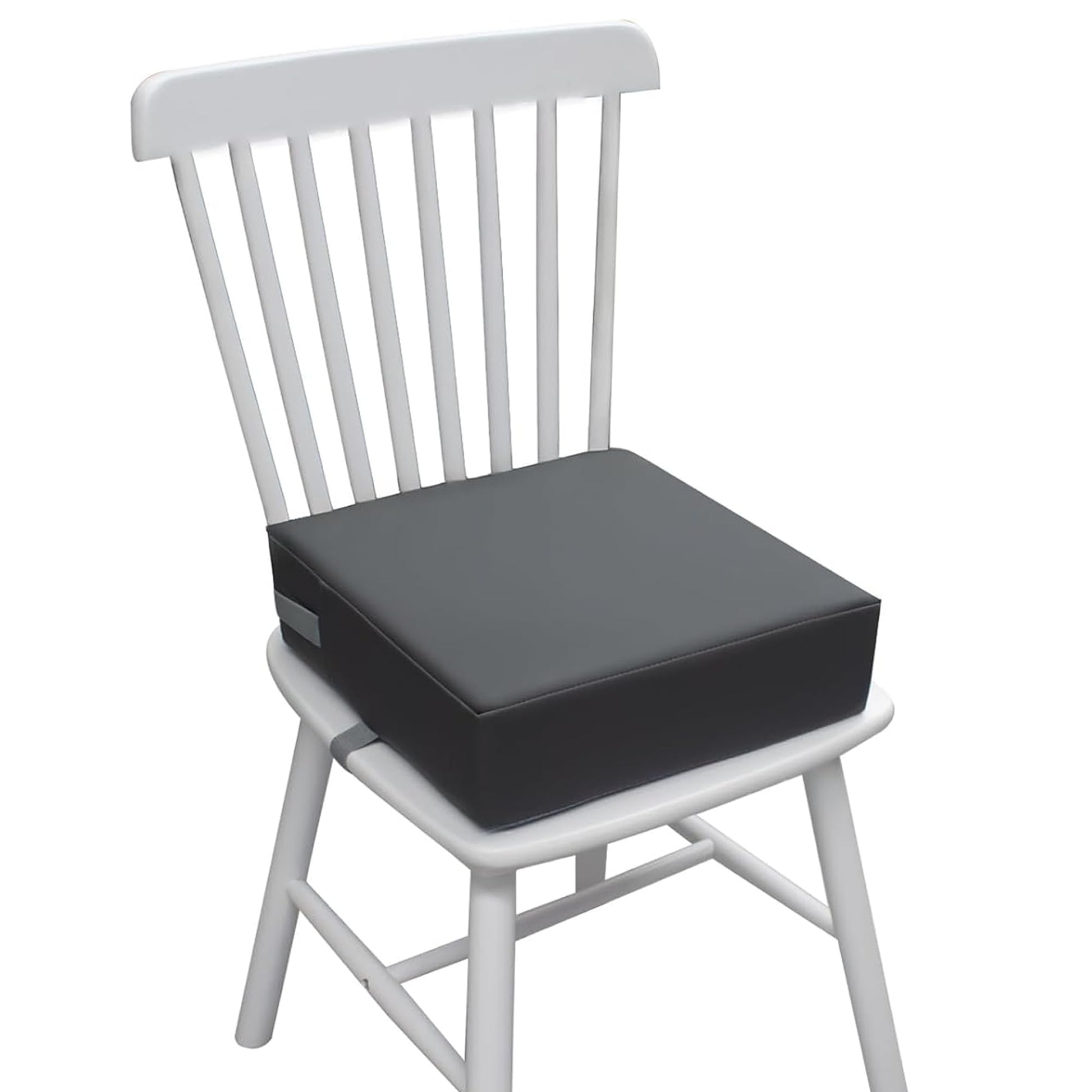 - Safety and non-slip: Table booster seat is 13.4 'D x 13 .4'W x 3.94 'H inches. The booster seat has two safety straps on the cushion, which can be fixed on the back and bottom of the chair, and the bottom of the cushion has non-slip silicone to ensure that the cushion will not slip off. Double protection of children's feeding safety