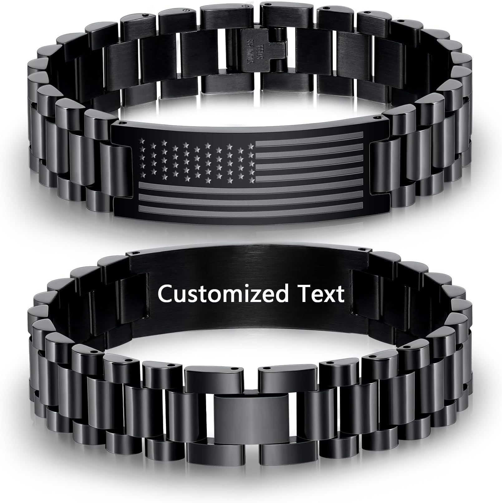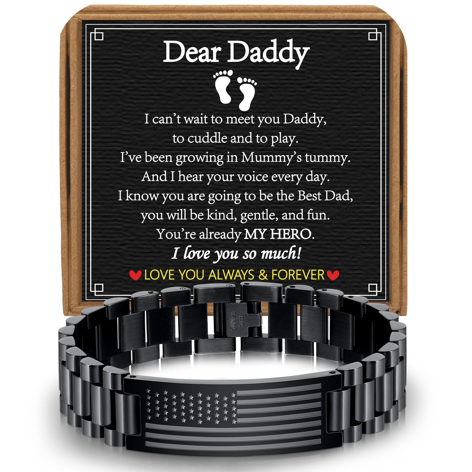 Gifts for Dad Stepdad New Dad Husband, Stainless Steel American Flag Watch Bracelet Birthday Fathers Day Christmas Jewelry Gifts for Men