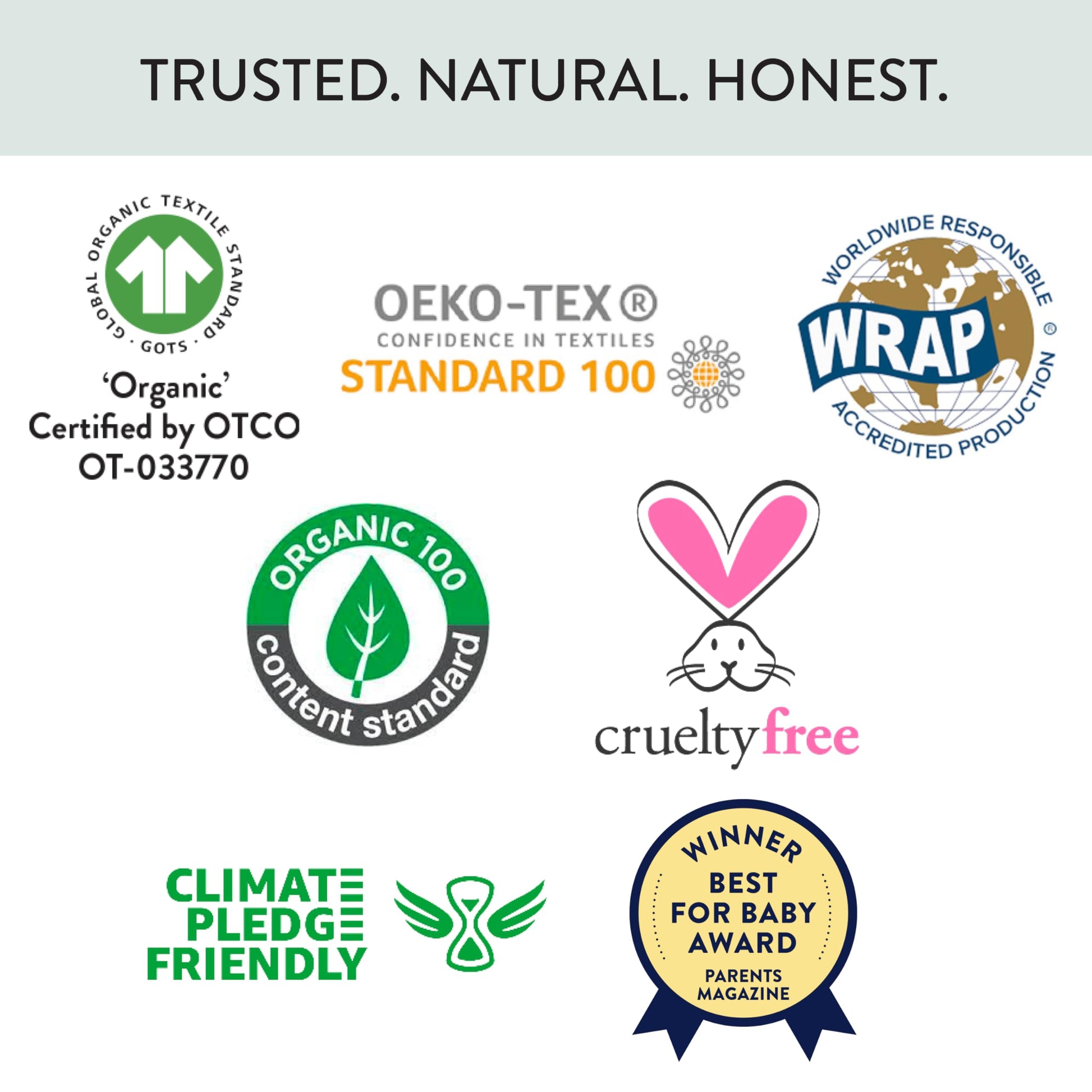• 100% ORGANIC COTTON: Certified by GOTS: GOTS is the leading world-wide standard for products made in sustainable manufacturing facilities without the use of synthetic pesticides, are non-toxic, PVC free and made without heavy metal phthalate dyes