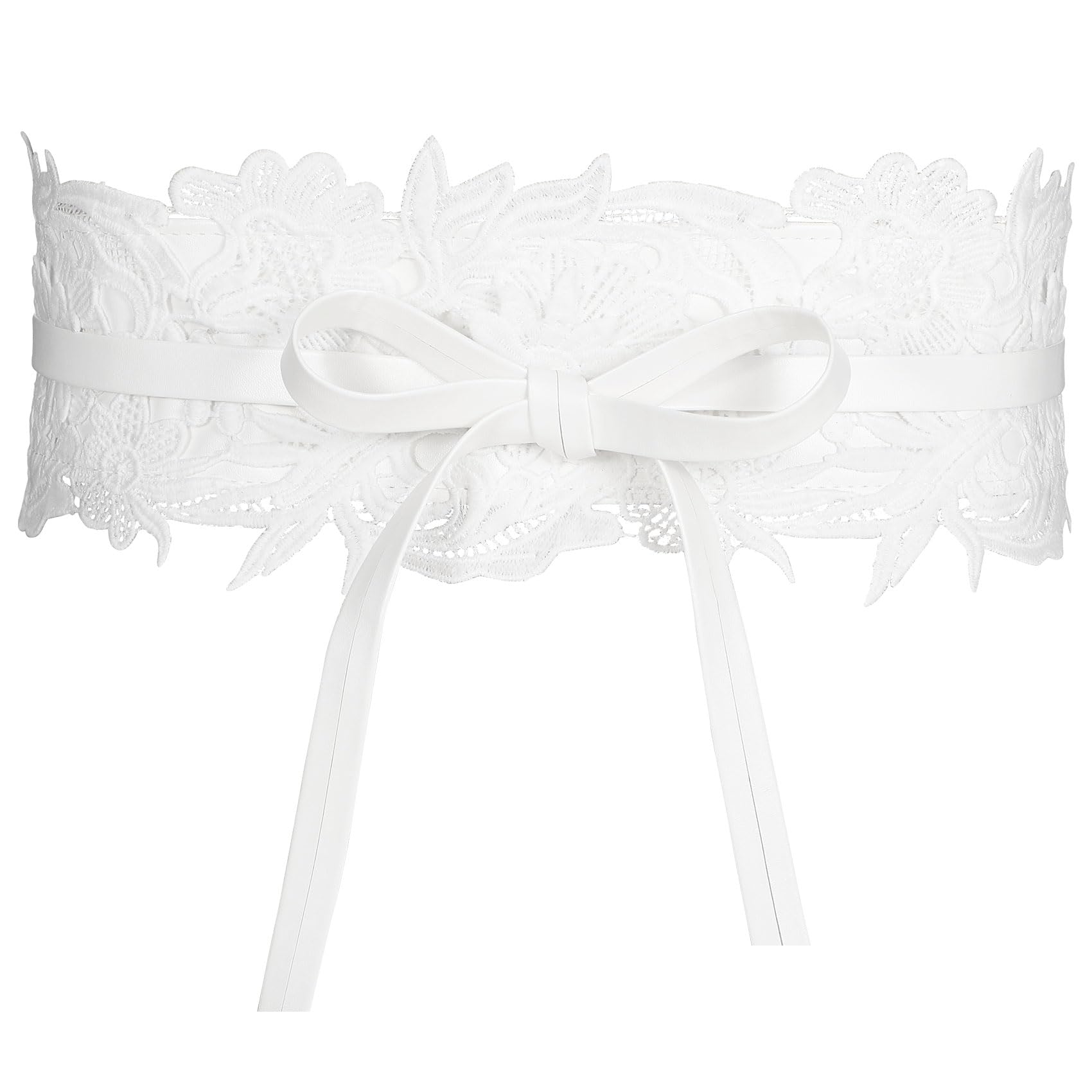JASGOOD Women Lace Waist Belt Corset Waist Band Belt For Dress Obi Bowknot Cinch Wide Belt Bow Tie Wrap Boho Faux Leather