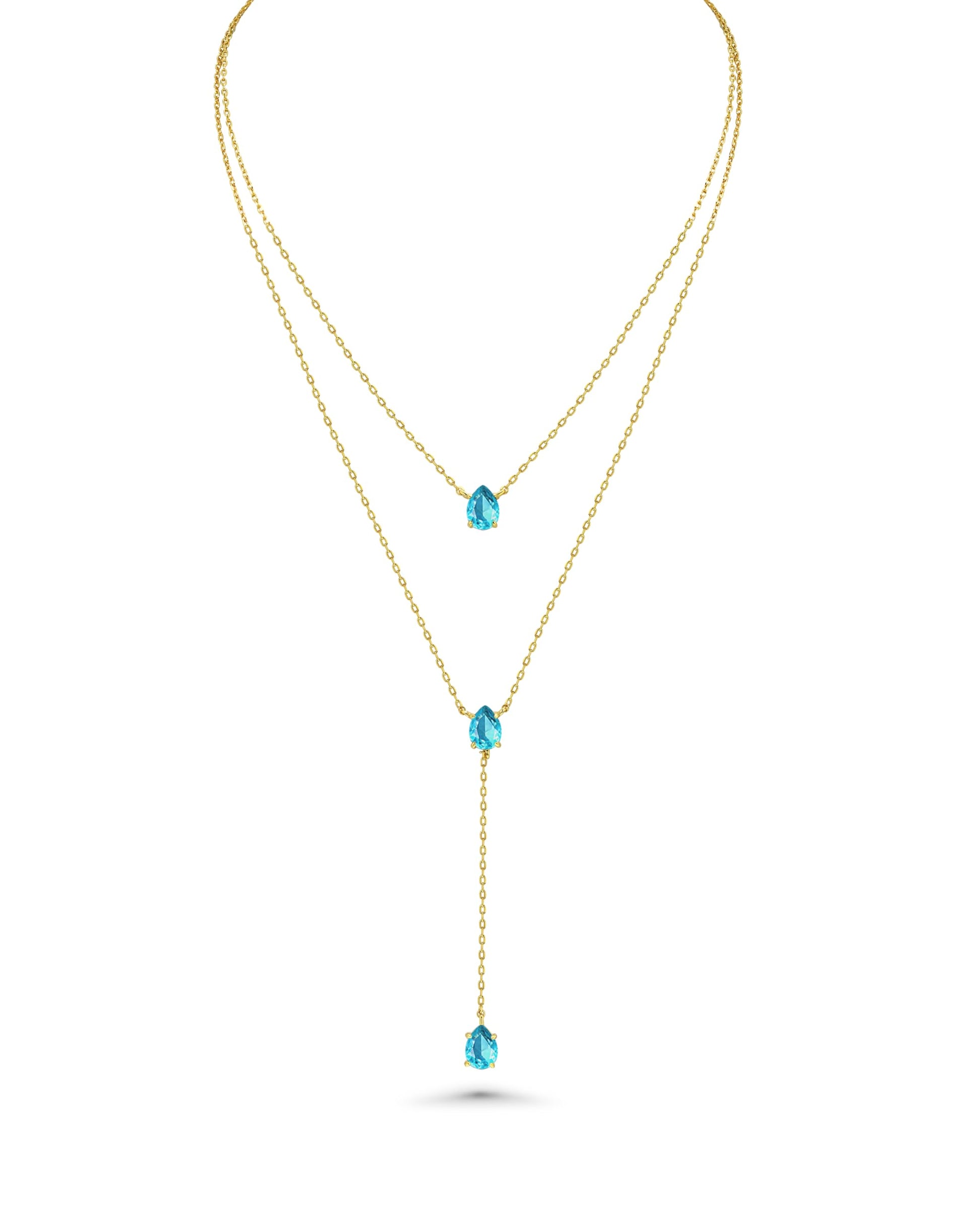 Long 18K Gold Plated Blue Green Red Layered Pendant Necklace For Women (Emerald, Ruby, Seafoam, Sky, Sapphire), Dainty Birthstone Necklace, Statement Necklace Jewelry Gifts.