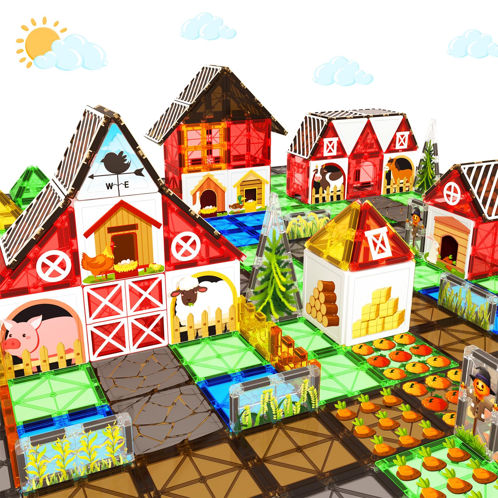 Magnetic Tiles Toddler Toys Garden Farm Animal Set, Magnetic Blocks Montessori Sensory Educational Learning Building Magnet Toys for 3 4 5 6 Year Old Boys Girls, Kids Games Party Birthday Easter Gifts