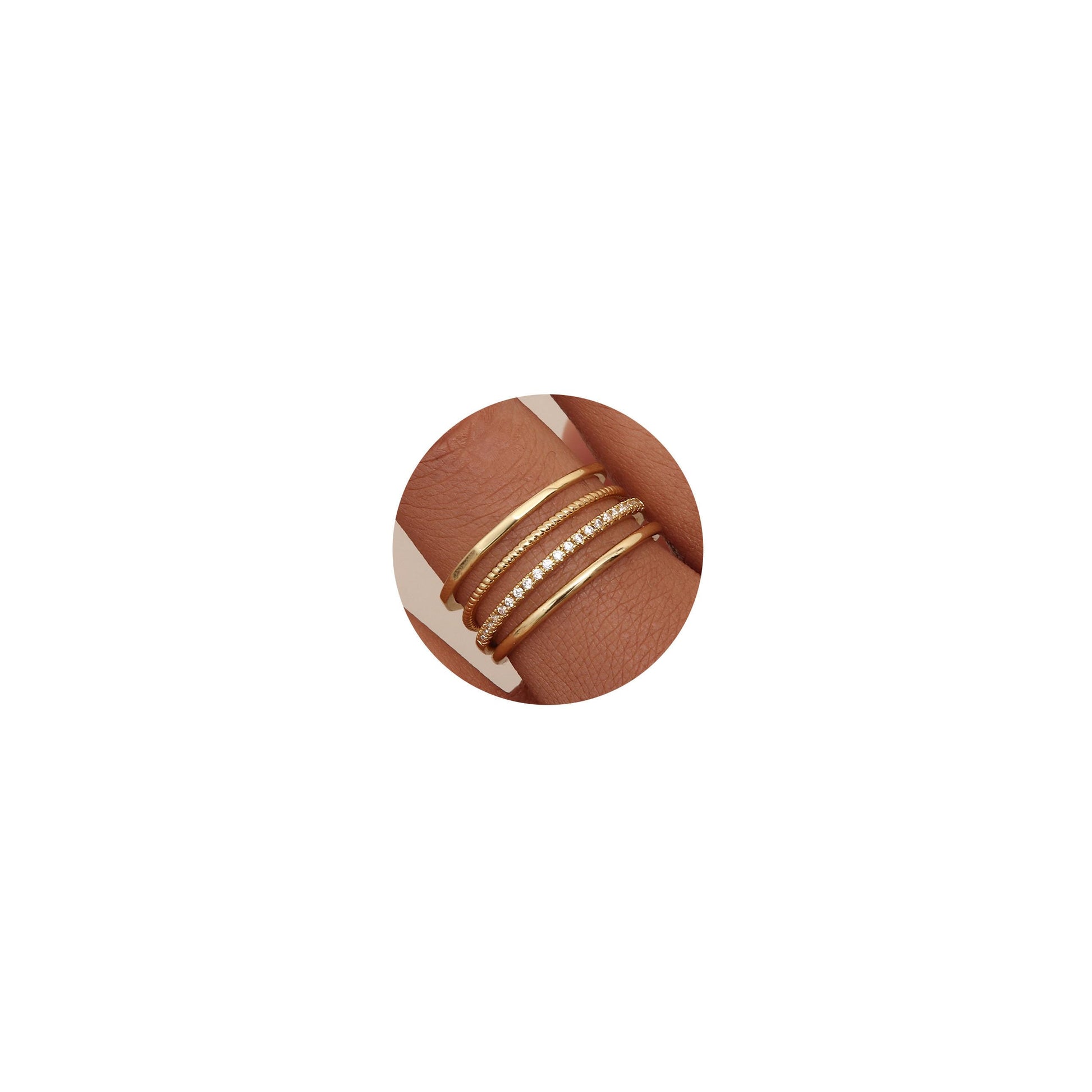 MILACOLATO 14K Gold Filled 1.3mm Thin Stackable Rings for Women - Minimalist Non Tarnish Half Cubic Zirconia Band Rings - Dainty Trendy Statement Stacking Rings Set Size 5-10