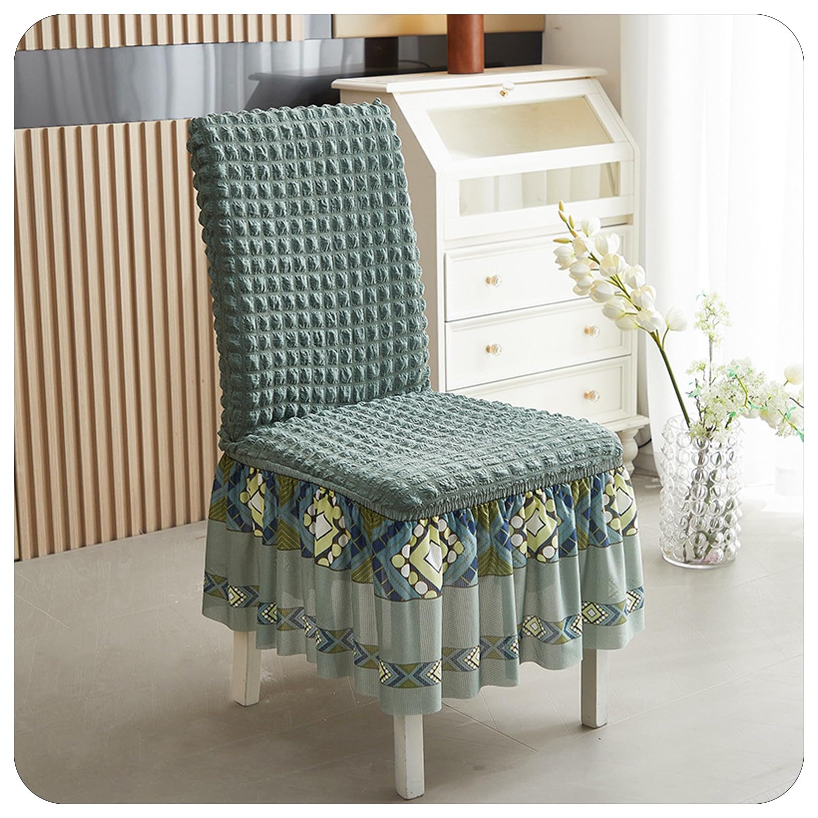 • Exquisite Seersucker Chair Cover - The unique Skirt design only beautiful and generous,delivering both sophistication and practicality for modern dining spaces.Brightly Seersucker dining chair covers match your modern style and can be used in all seasons
