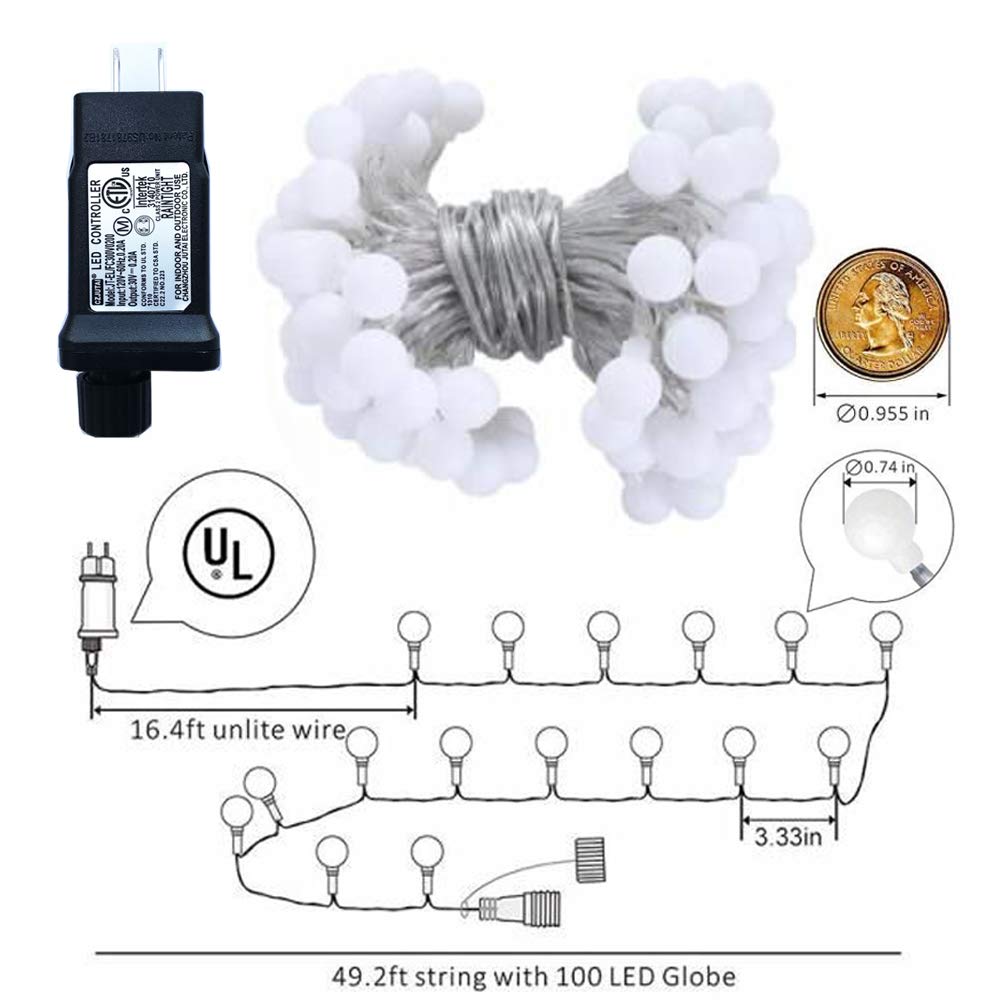 • Led Globe String Ligths: Plug in 100 LED 49ft(33ft String Lights,16ft Lead Wire) Warm White Globe String Lights-UL Listd, more durable