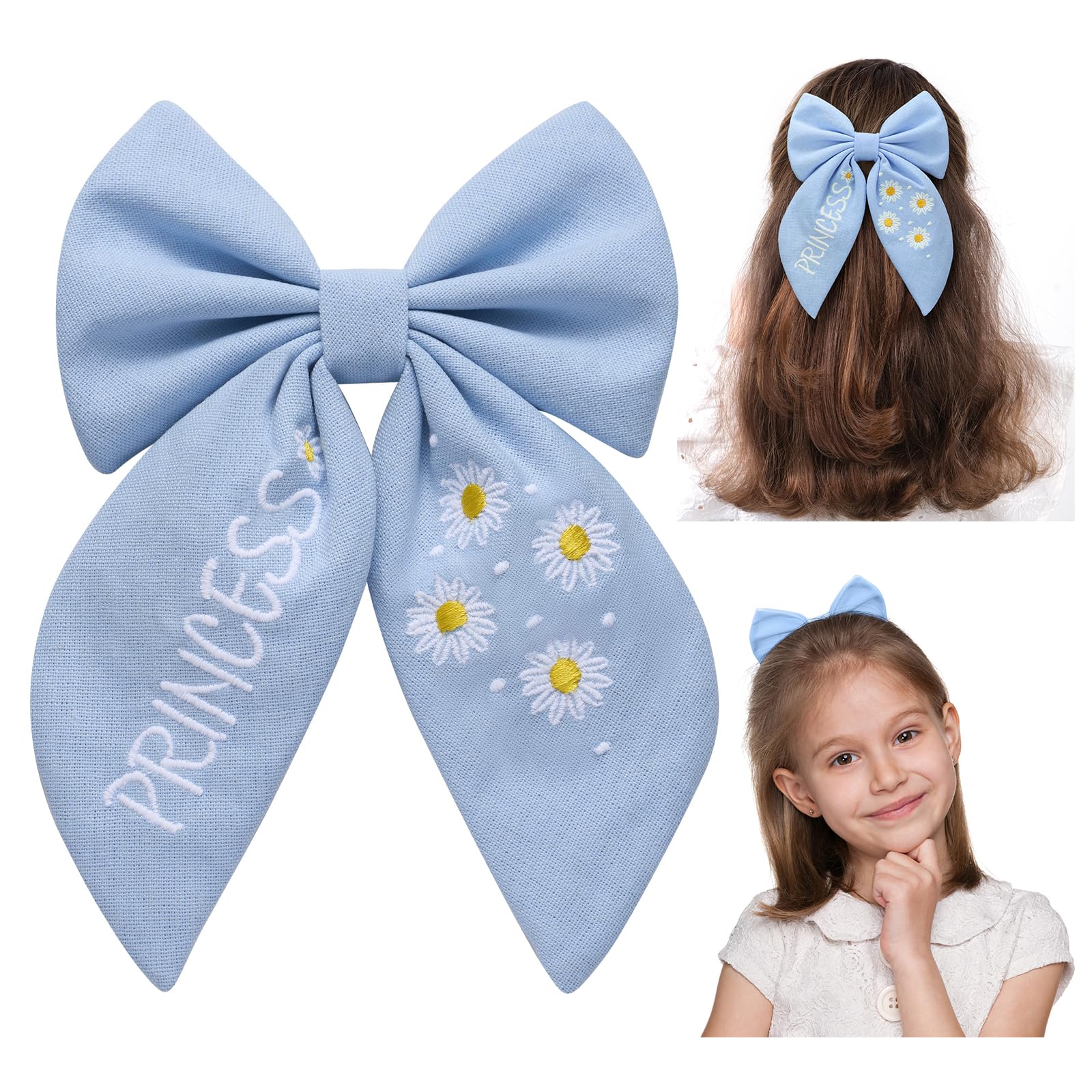 SWEETV Lazos grandes de lino para el pelo para niñas, hechos a mano, lazo floral de algodón, accesorios para el cabello, pinzas para el cabello de flores de primavera, pasadores, lazos para el pelo