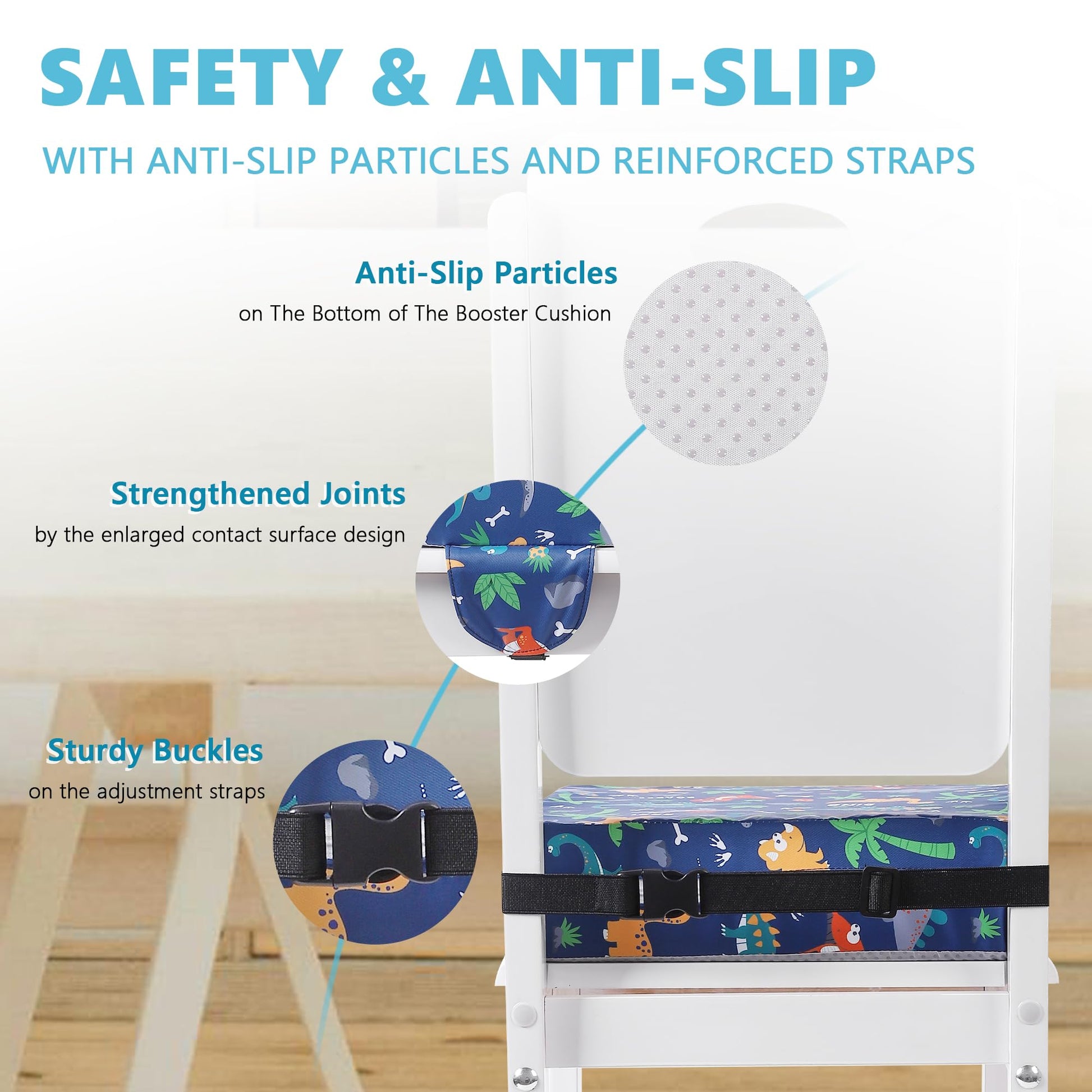 Sylynvia Booster Seat for Kitchen Chair with Adjustable Straps, Toddler Booster Seats for Dining Table Portable for Travel Camping Eating, Booster Cushion for Table for Baby Child Infant Kid Boy Girl