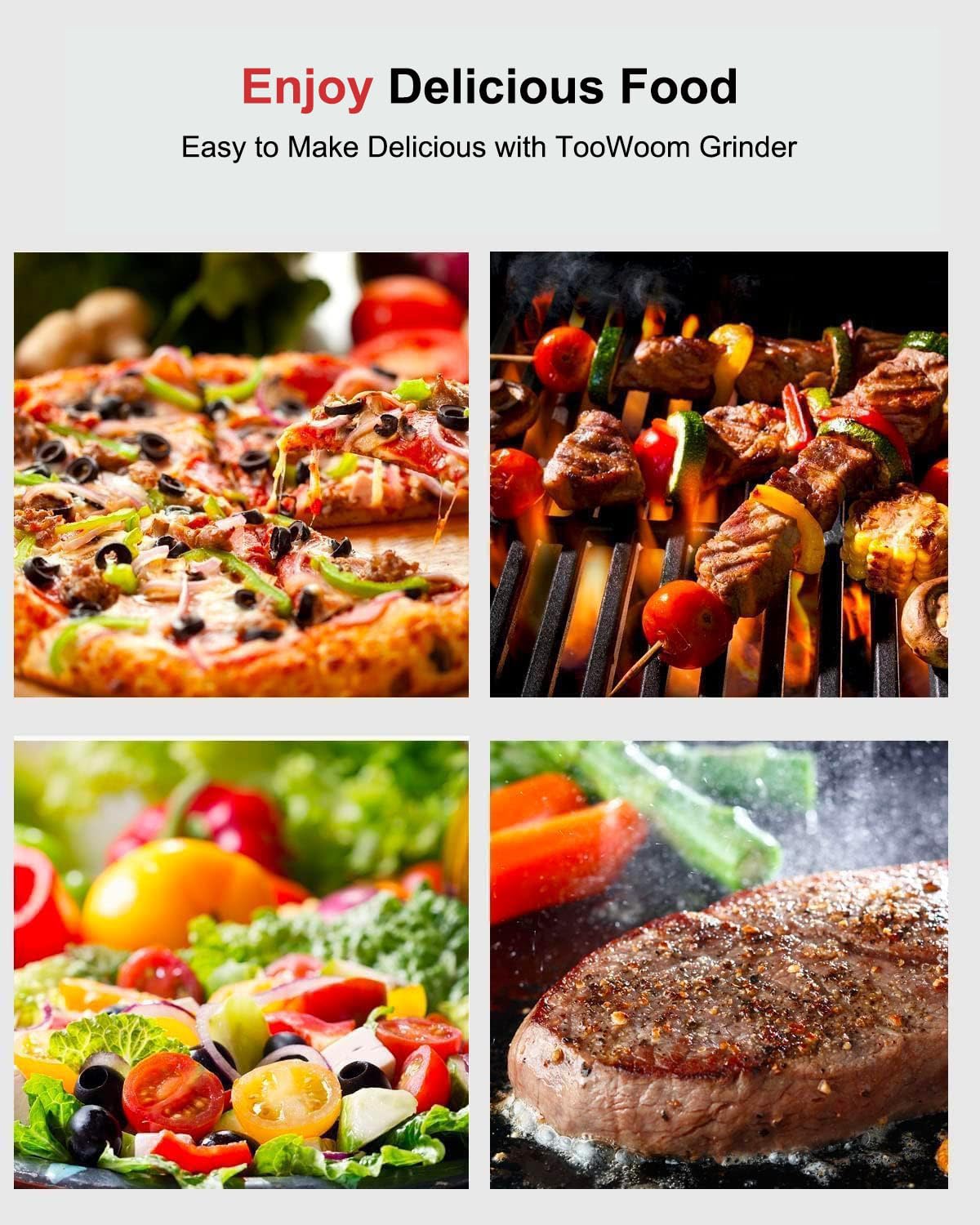- [Professional Cooking Experience] TooWoom Salt and Pepper Mill Set features a sealed lid that prevents moisture from entering, locking in the aroma of premium pepper and enhancing the flavor of your food. It's an essential kitchen tool and a stylish addition to your table decor.