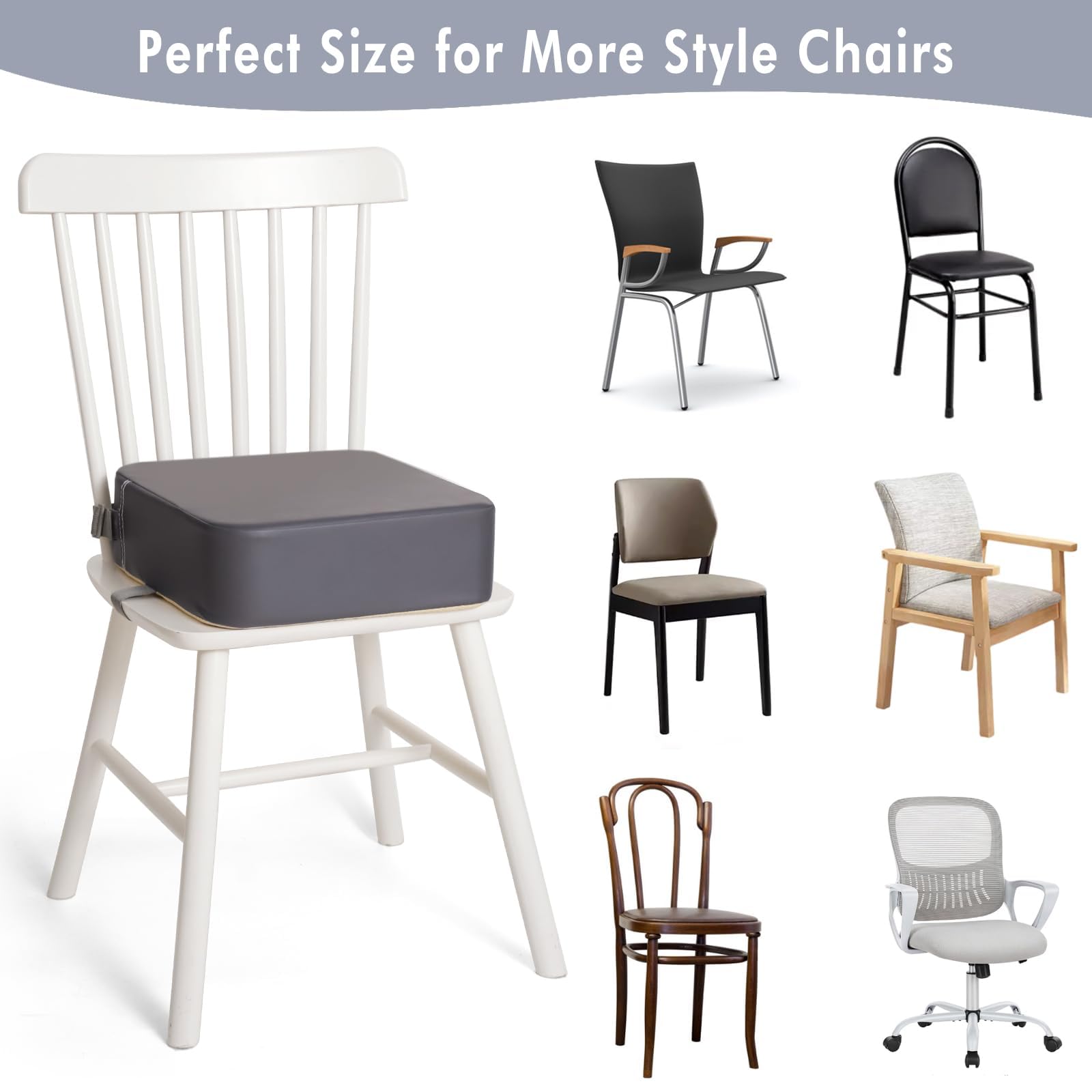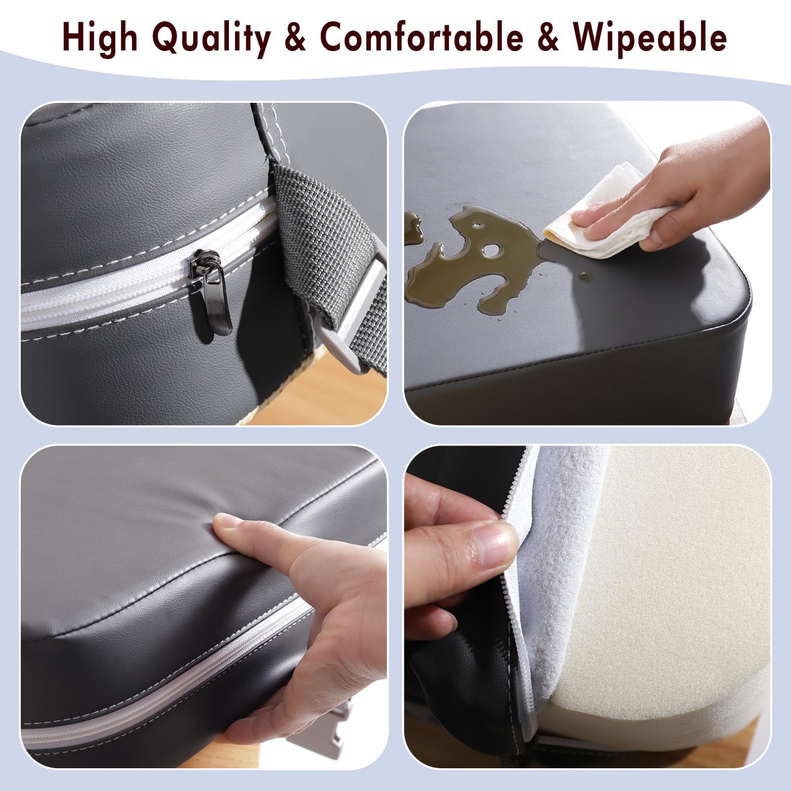 - 【Waterproof & Easy to clean】- The booster seat for table is made of waterproof PU leather. It is detachably and easy to clean. If the food accidentally stains the booster seat, simply wipe it clean with a wet towel. The dining chair cover booster cushion is also removable for machine washing.