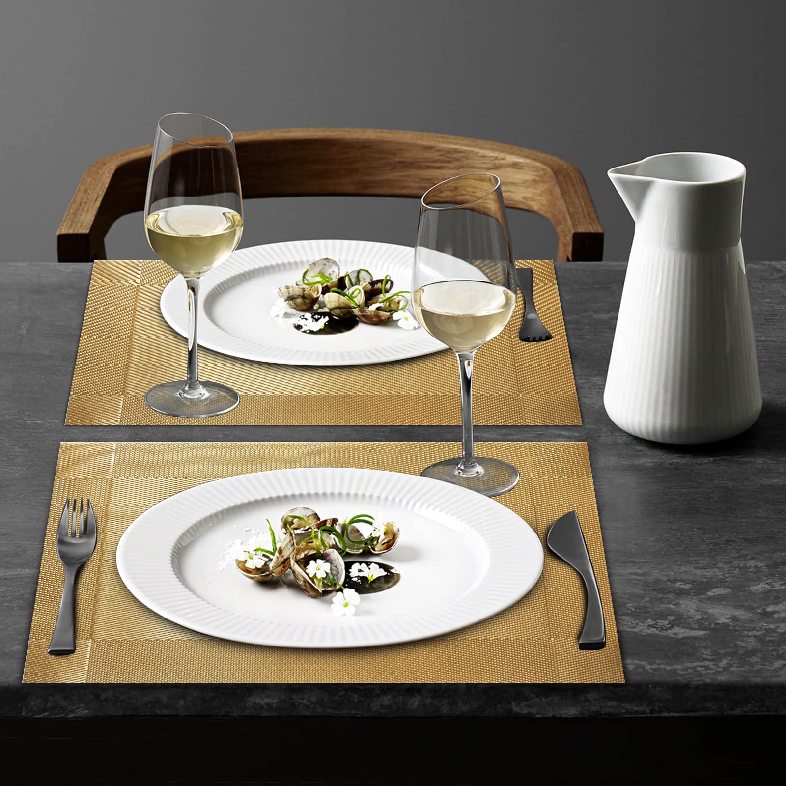 - Heat Resistant 212°F (100°C):Placemats set of 6 feature a double-layer cross weave vinyl process design provides twice the anti-water function than other placemats. Effective heat resistance can reach to 212°F (100°C)