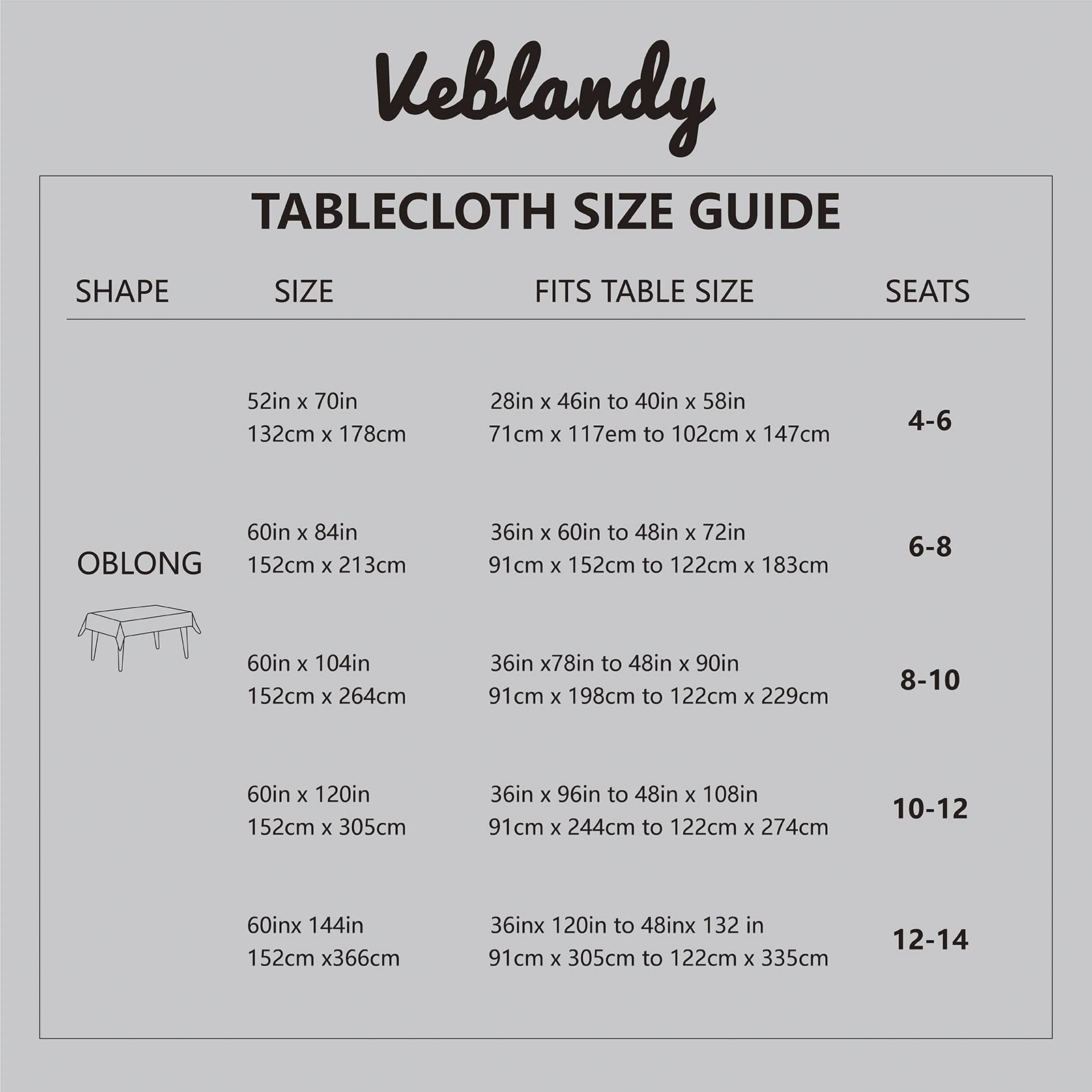 - Premium Fabric: Veblandy tablecloths are crafted from high quality solid linen style fabric. Keeps your table surface protected from spills and scratches. Does not contain harmful chemicals and has no pungent odor, perfect to decorate your tables. Rectangle table protector 52x70 inch. Multiuse for 4-6 foot rectangular tabletops.