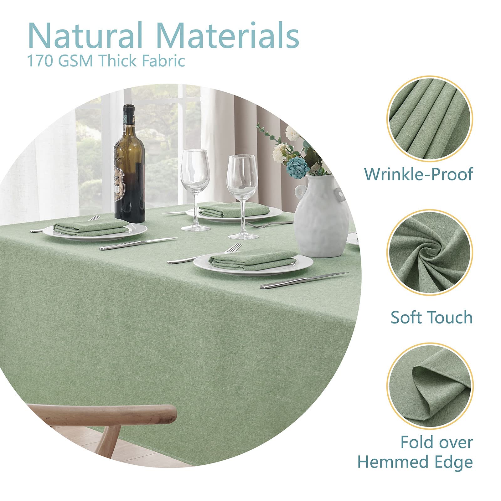 Veblandy Rectangle Tablecloth Linen Textured Waterproof & Stain Resistant Table Cloth Wrinkle Free Decorative Fabric Farmhouse Table Cover for Dining/Party/Buffet/Wedding, 52 x 70 Inch, Sage Green