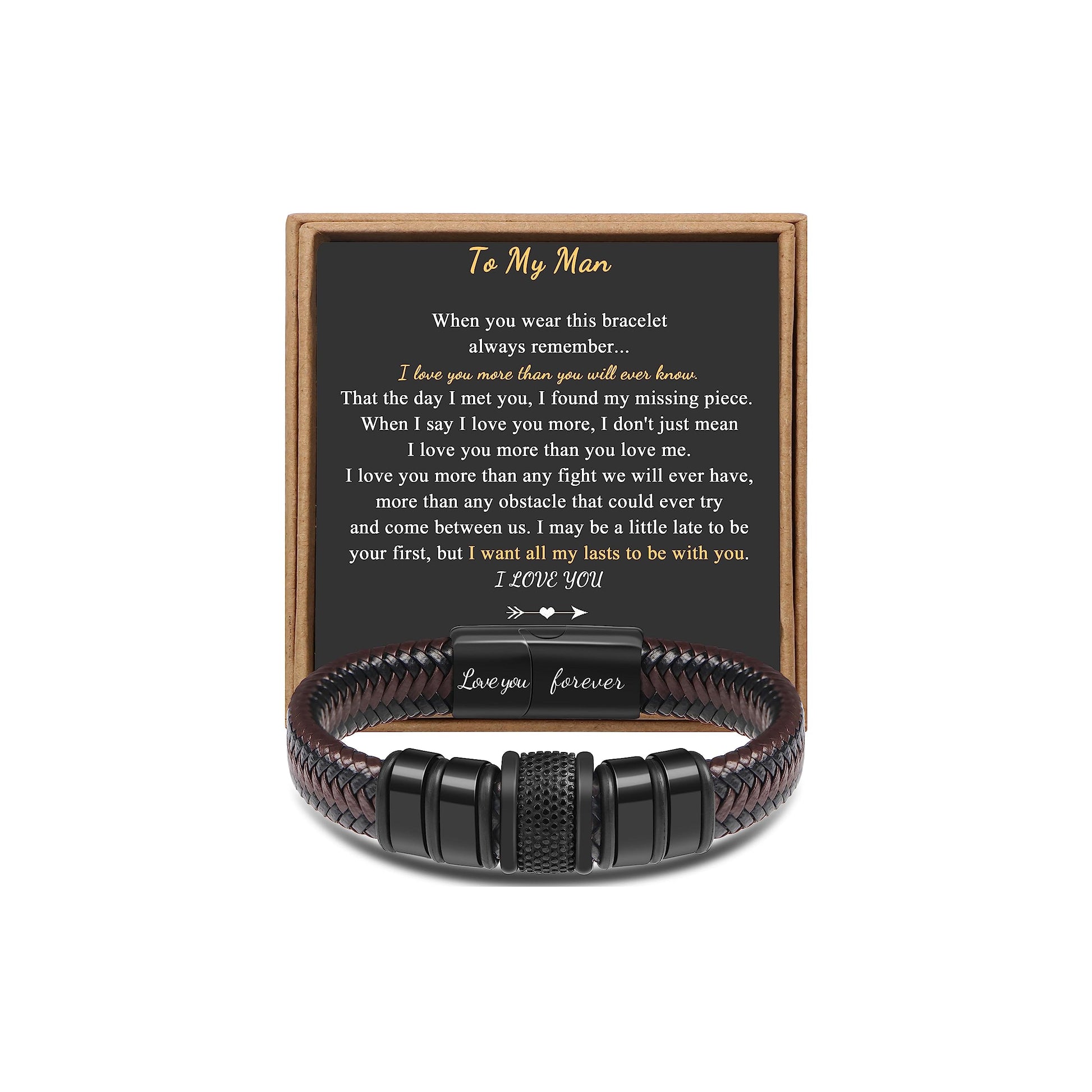 ππ’ππ ππ¨π« πππ§ Braided πππππ‘ππ« ππ«ππππ₯ππ for Men Dad Husband Boyfriend Son Grandson Brother Stainless Steel Clasp Engraved with Love You Forever Jewelry Birthday Gift 7.5 8.5 9 Inch