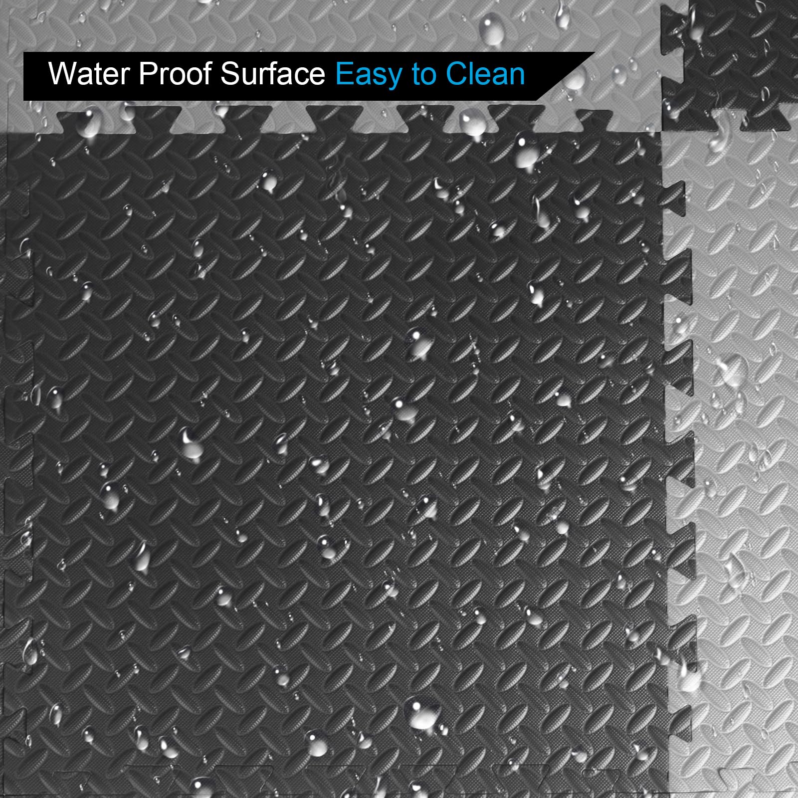 Details: Holymus 1 in Thick 48 Sq Ft EVA Foam Exercise Gym Mats 12 Pcs - Interlocking Puzzle Floor Tiles for Home Gym Heavy Workout Equipment Flooring - 24 x 24in Tile, Black & Gray