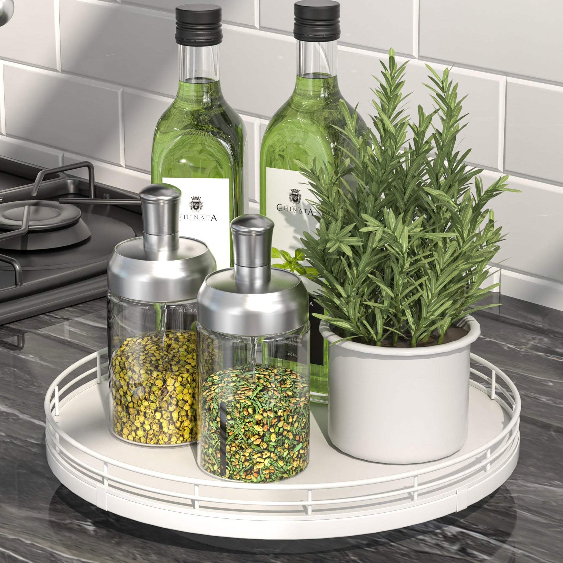10" Oak Wood Lazy Susan Organizer, Lazy Susan for Cabinet Dining Table Pantry Wood Turntable Organizer Tray for Coffee Table Kitchen Countertop Salt Pepper Spice Organization and Storage Round White