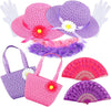 10 Pcs Girls Tea Party Set Includes Tea Party Hats Bonnets Fan Gloves Small Pink Purse Feather Boas Dress up Sets for Little Girls Kids Children Birthdays Easter Party Supplies Accessories