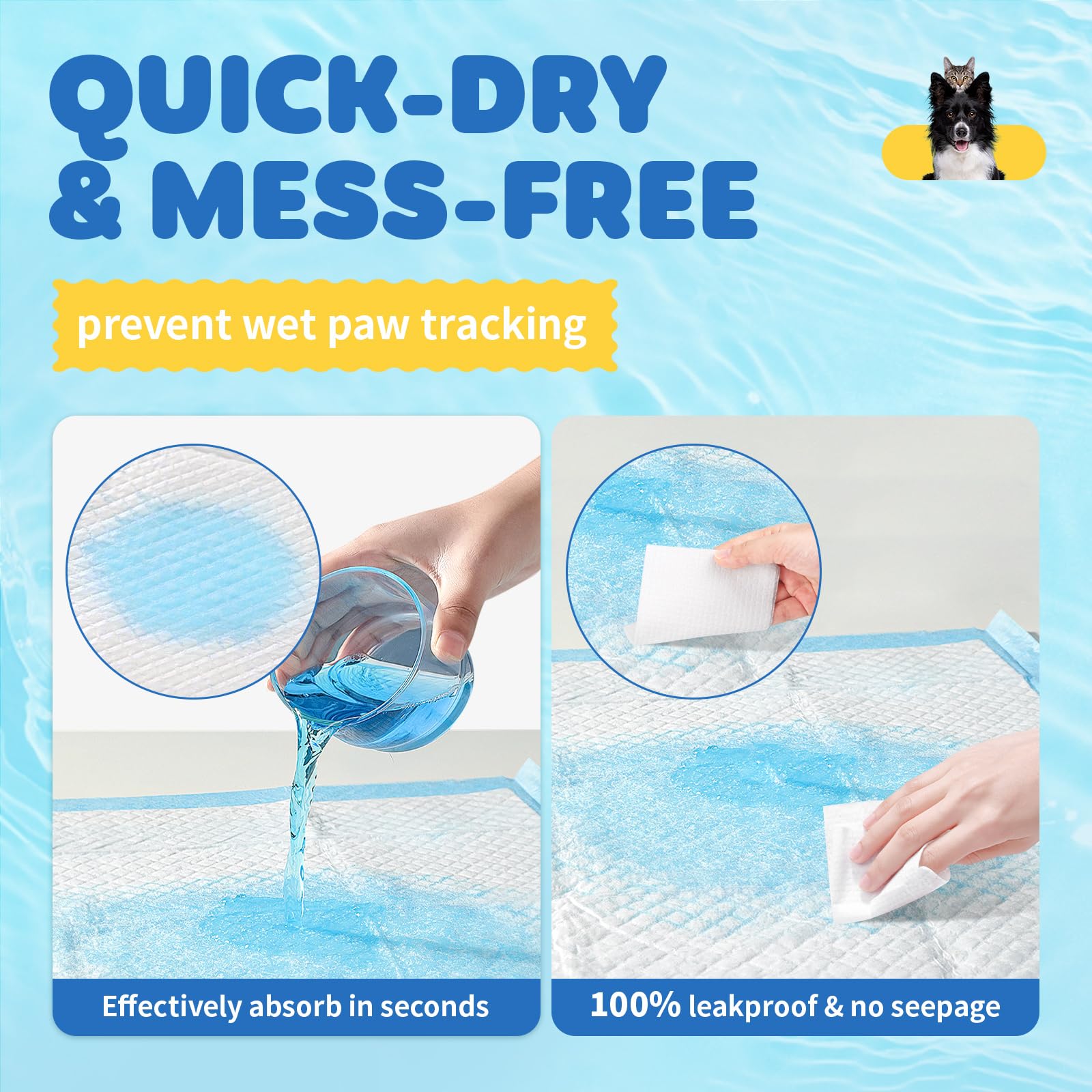 - SUPER ABSORBENT 6-LAYER PROTECTION: Powools puppy pads pet training pads feature an ultra-absorbent 6-layer material that instantly turns liquid into gel on contact. This innovative polymer locks in moisture and prevents leaks, messes, and odors. Your floors stay clean and dry.