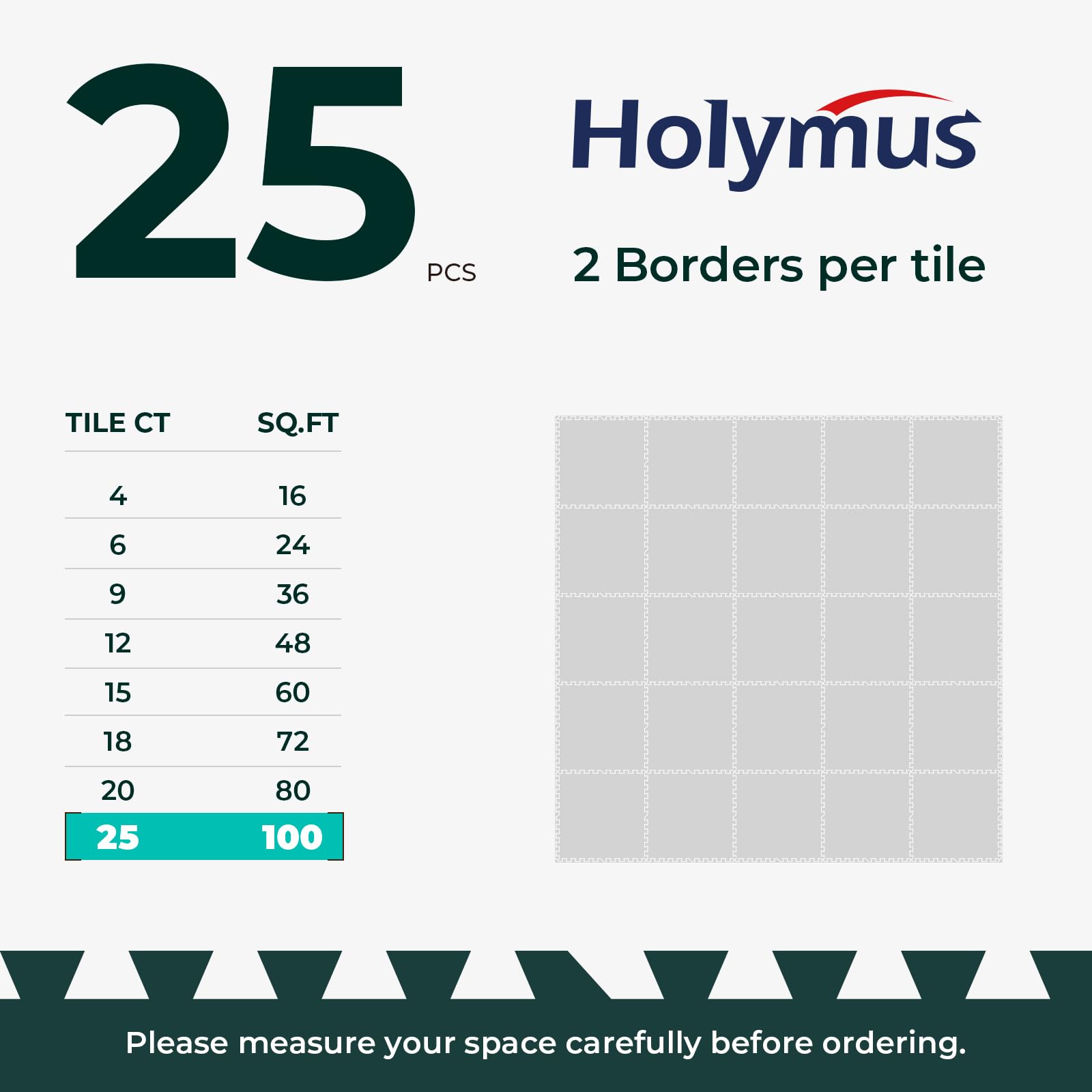 - đăFOAM FLOOR TILES 24 X 24 INCHăThese wood grain foam floor tiles come in a set of 25 and can cover up to 100 square feet of space. Each foam mat is made from high-quality EVA foam, which provides ample cushioning and shock absorption. At 24 x 24 x 3/8 inches, these interlocking floor mats are thick and durable.