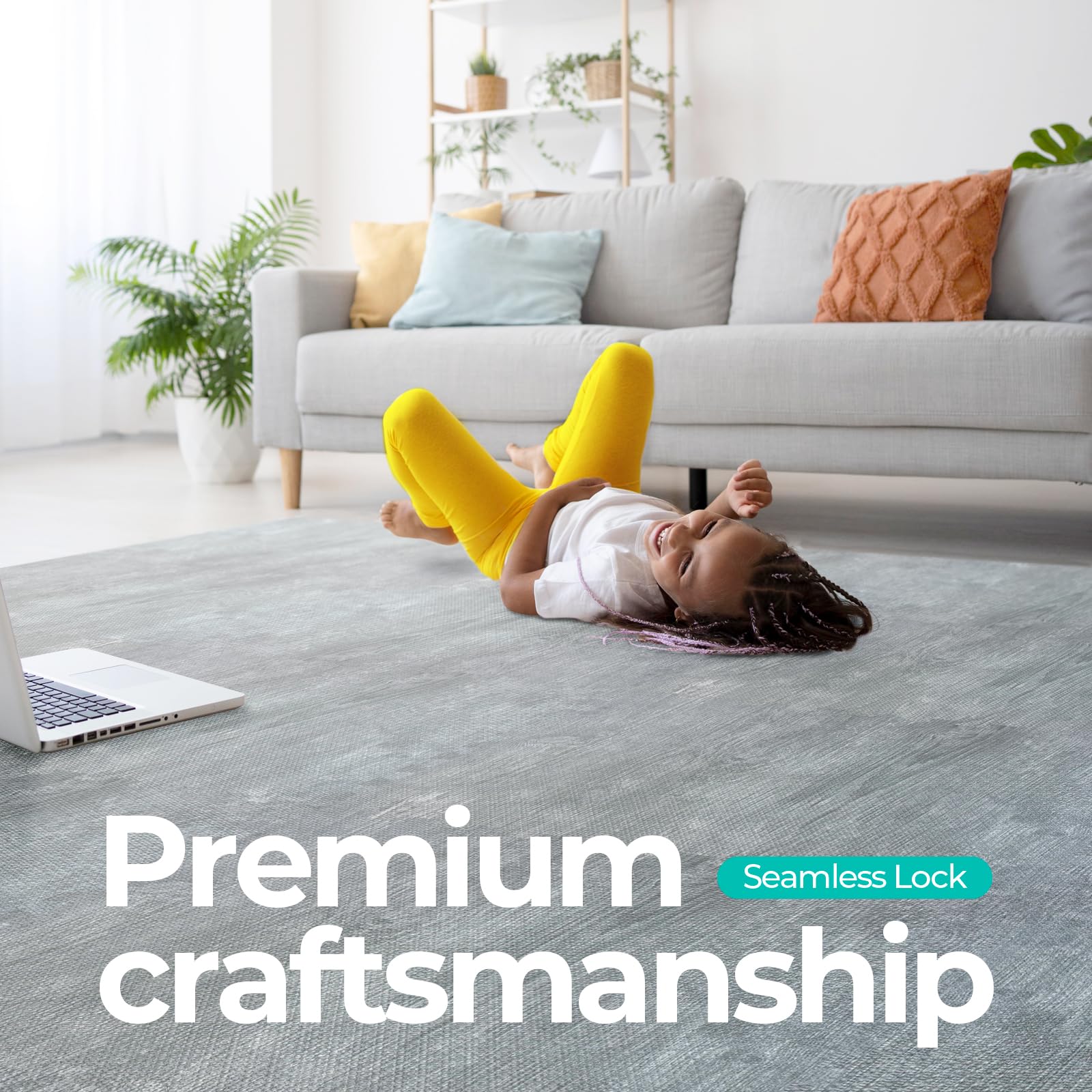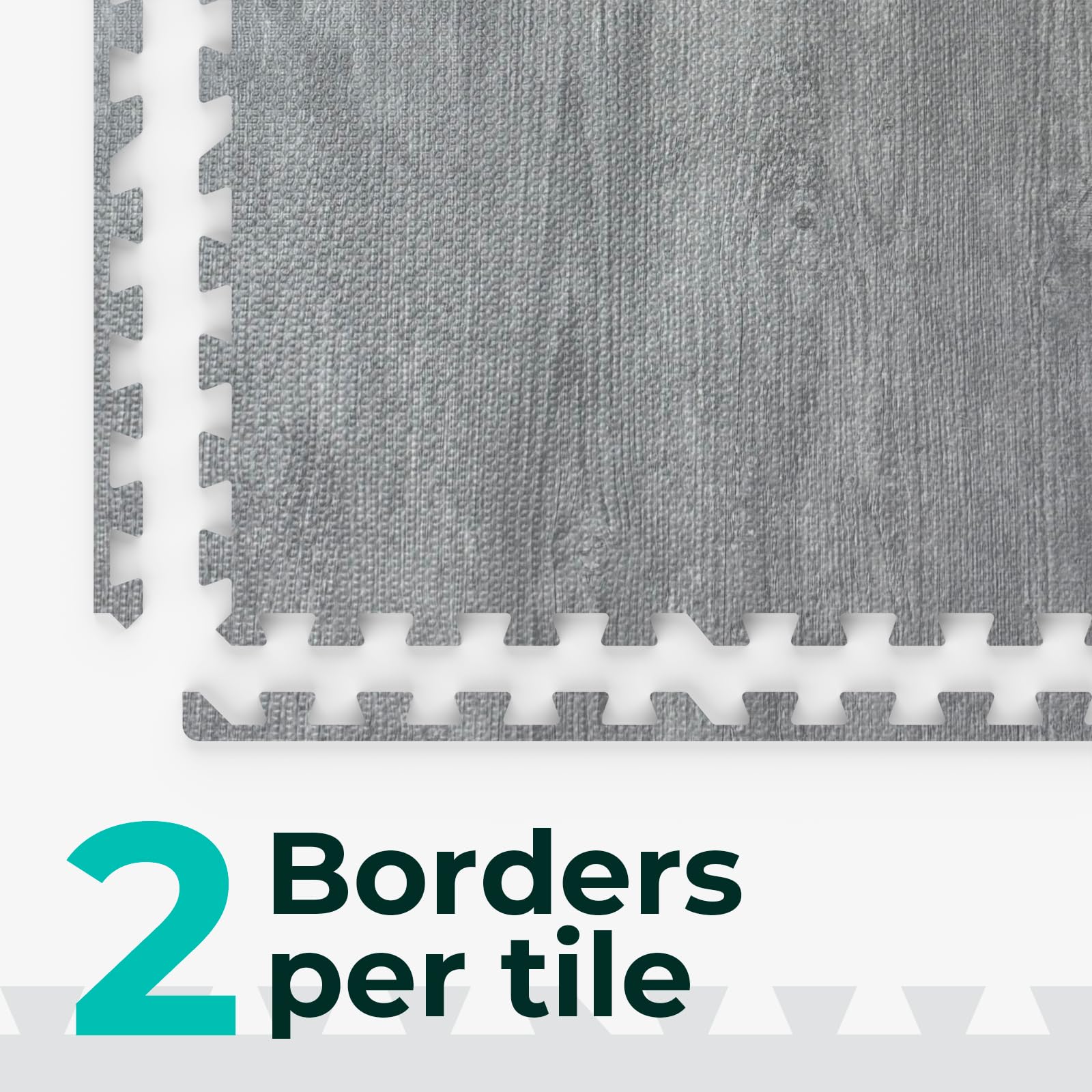100 Sq. Ft 3/8 Inch Thick Printed Foam Tiles Interlocking Foam Mat, 24" x 24", 25 pcs, Grey Wood Grain Style Print
