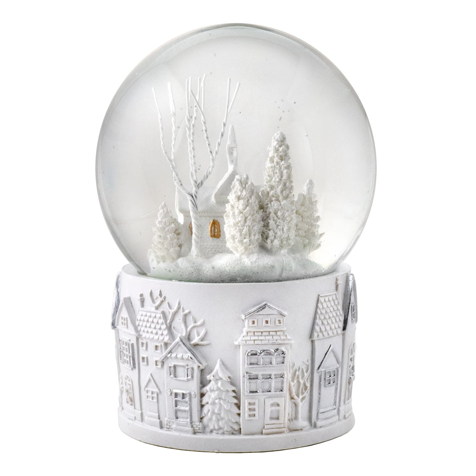 - 100MM White Christmas Scene Snow Globe plays the classic “Have Yourself a Merry Little Christmas” tune