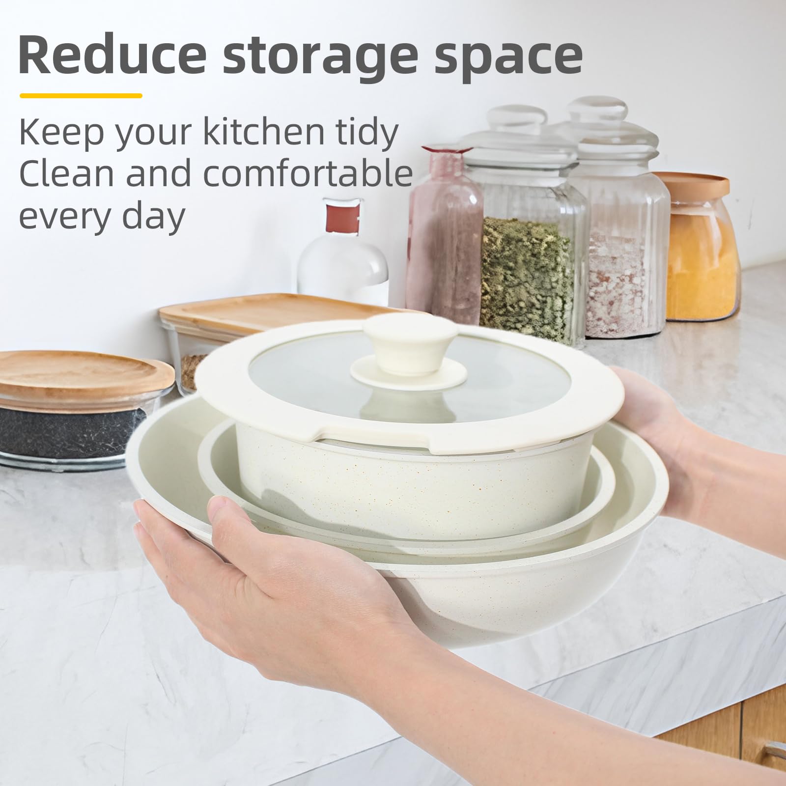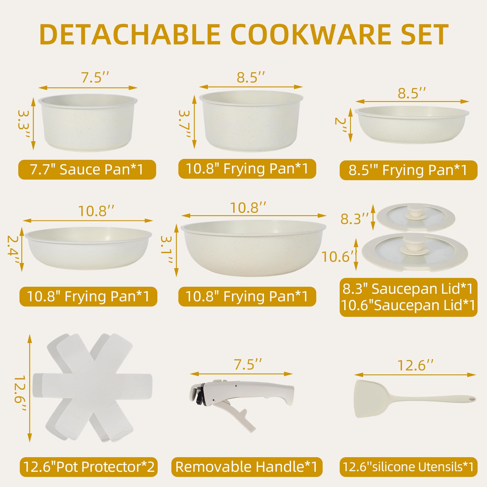 11 PCS pots and pans set, pots and pans set non stick, Removable Handles, Induction and Oven Safe Cookware Set, Dishwasher Safe, Cream