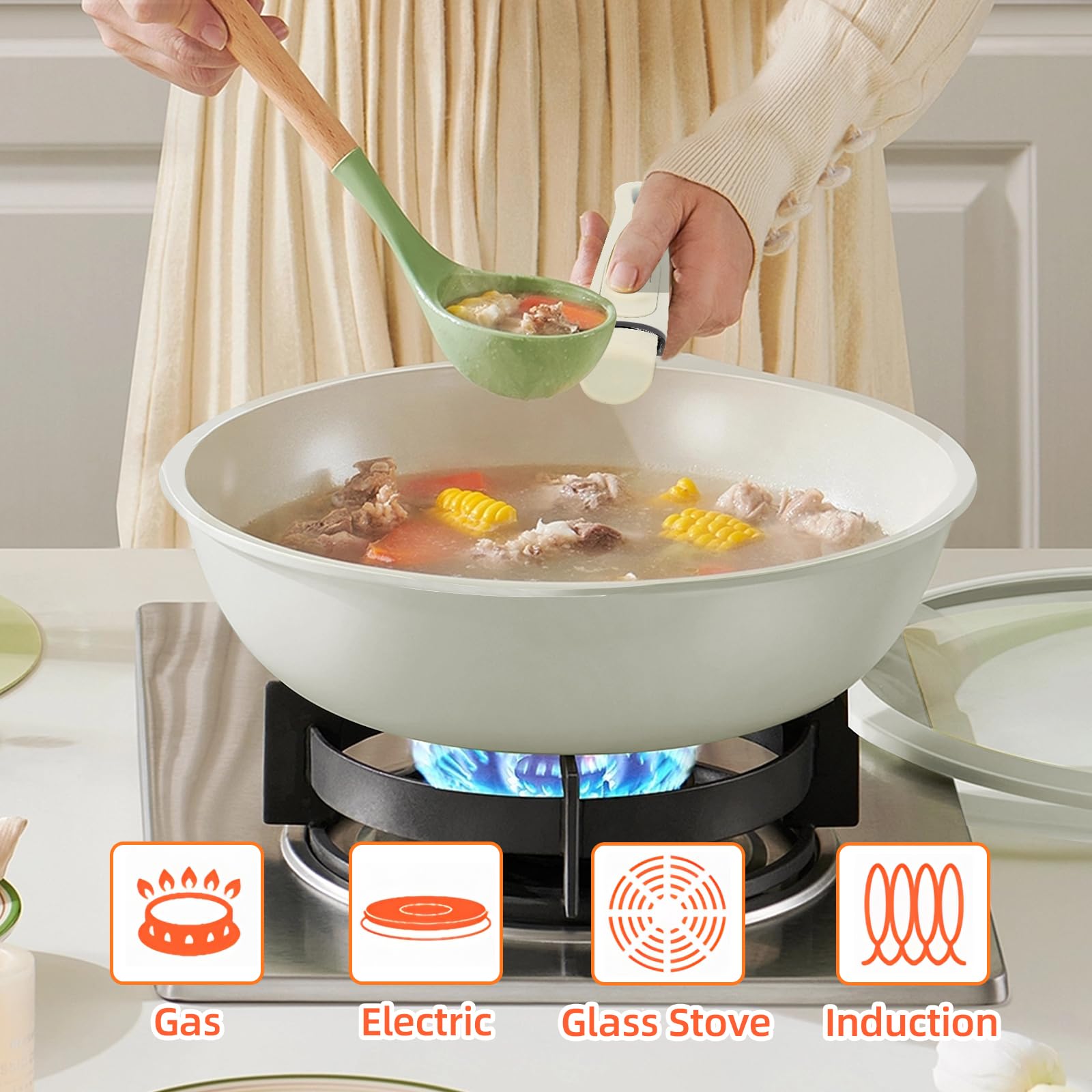 - PREMIUM NON-STICK COATING:The pots and pans set features a premium non-stick coating for superior durability and performance, requiring very little oil for food to glide off smoothly, so you can cook with confidence every time.