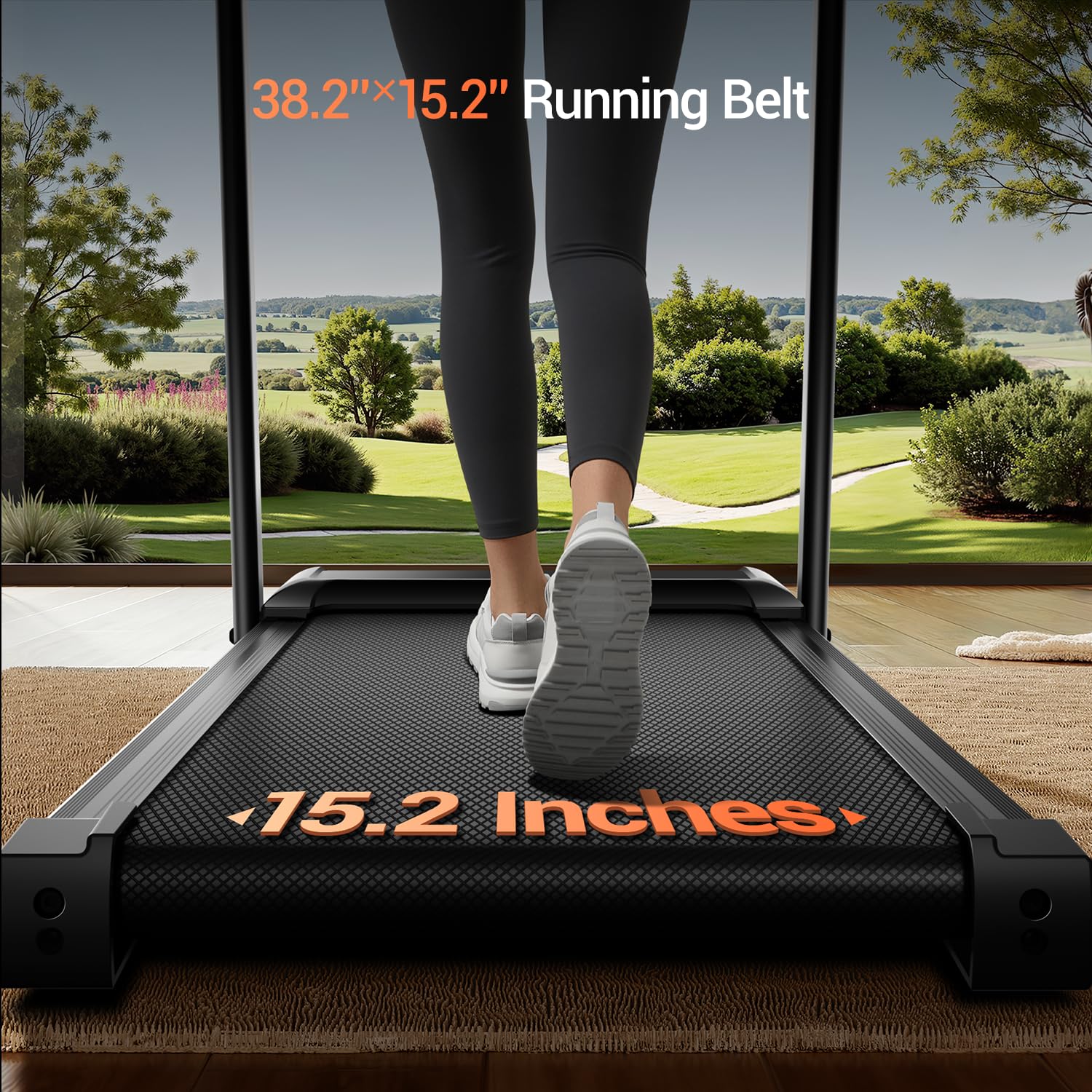 - Spacious Running Belt: 38.2“ x 15.2” Running belt is equipped with 6 layers of non-slip surface, cushioning rubber pads and silicone shock absorbers, the running belt will not shift to ensure a smooth and comfortable run, absorbs shock generated during running, reduces impact on joints and muscles, extends the duration of the workout, and improves workout results
