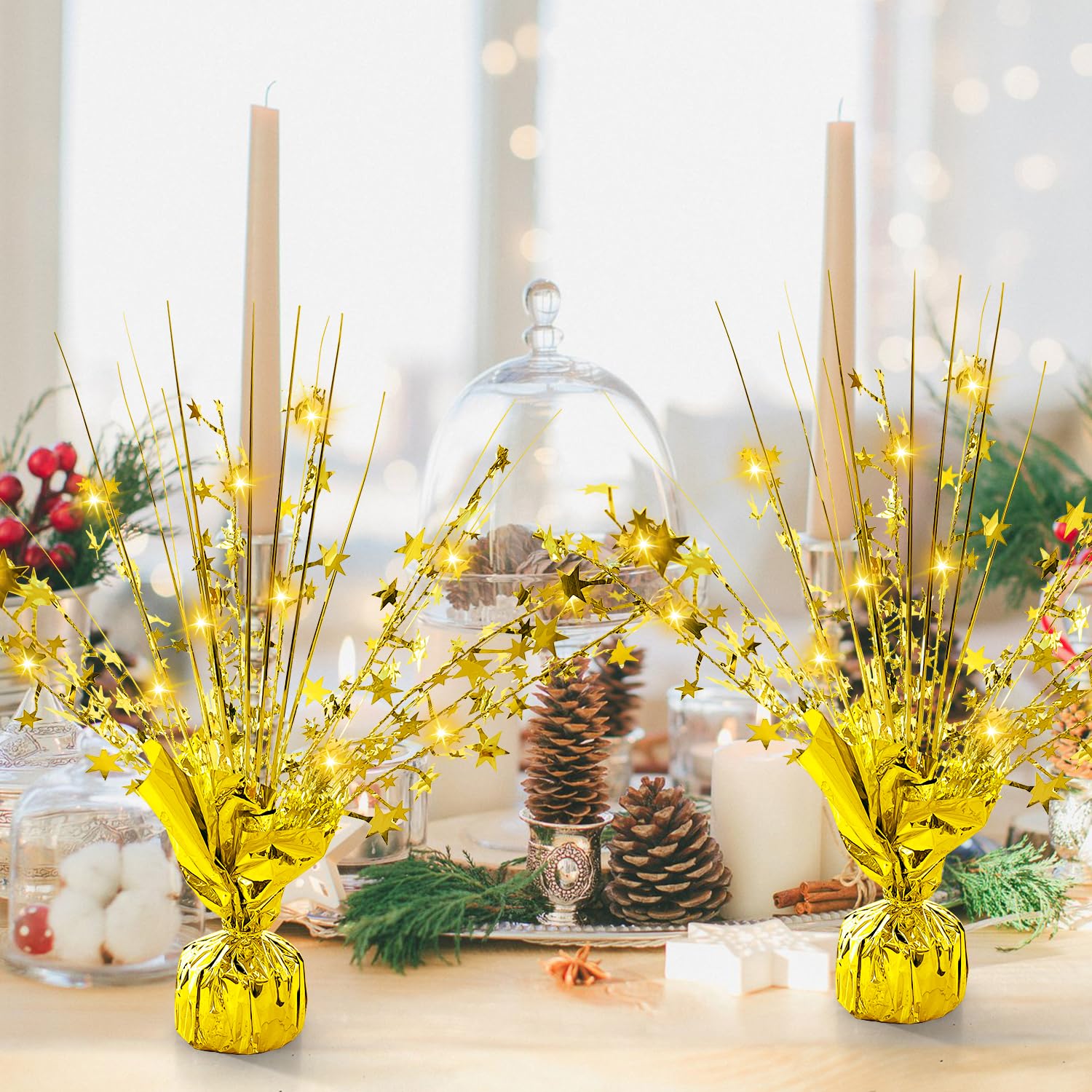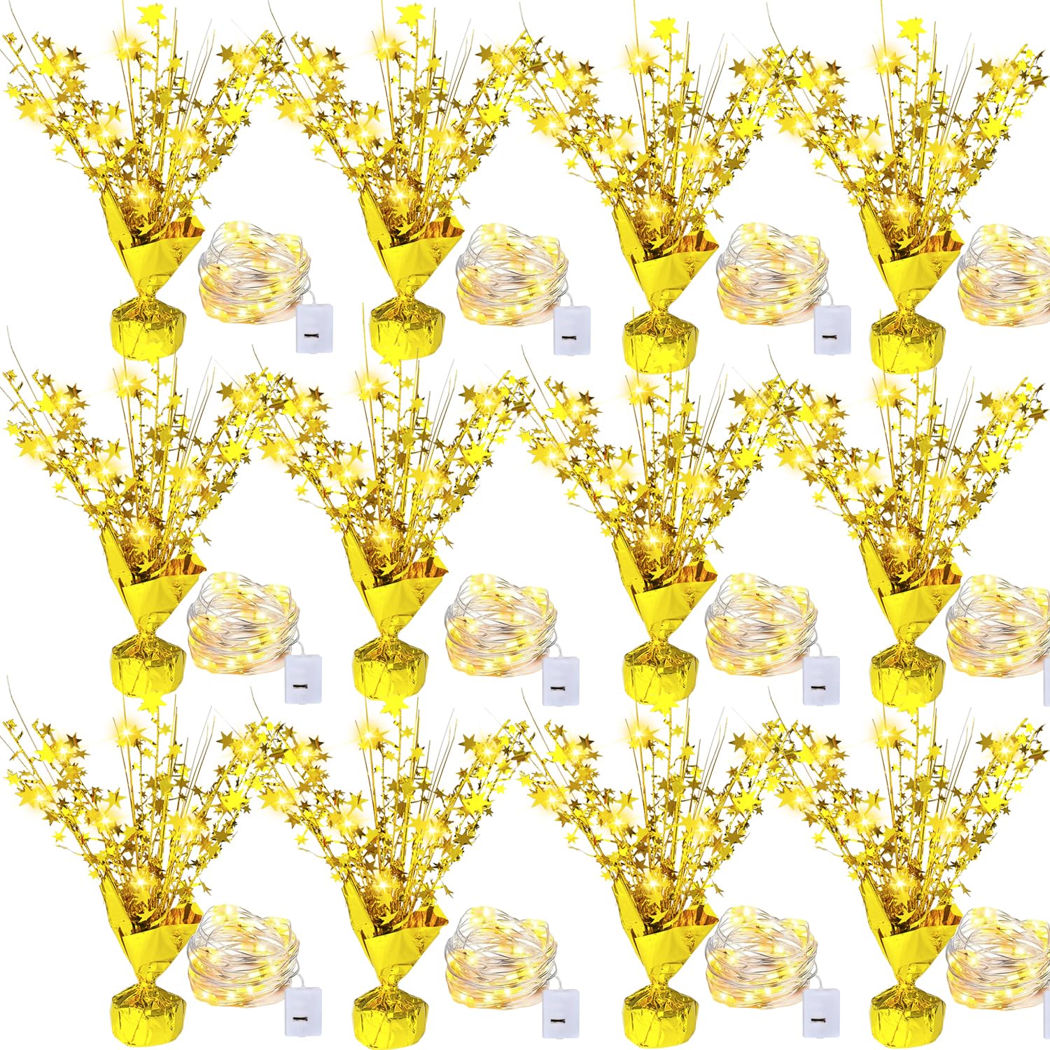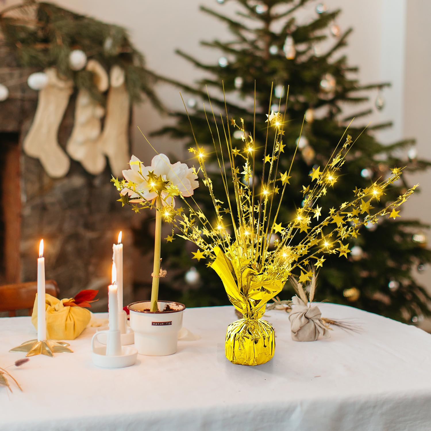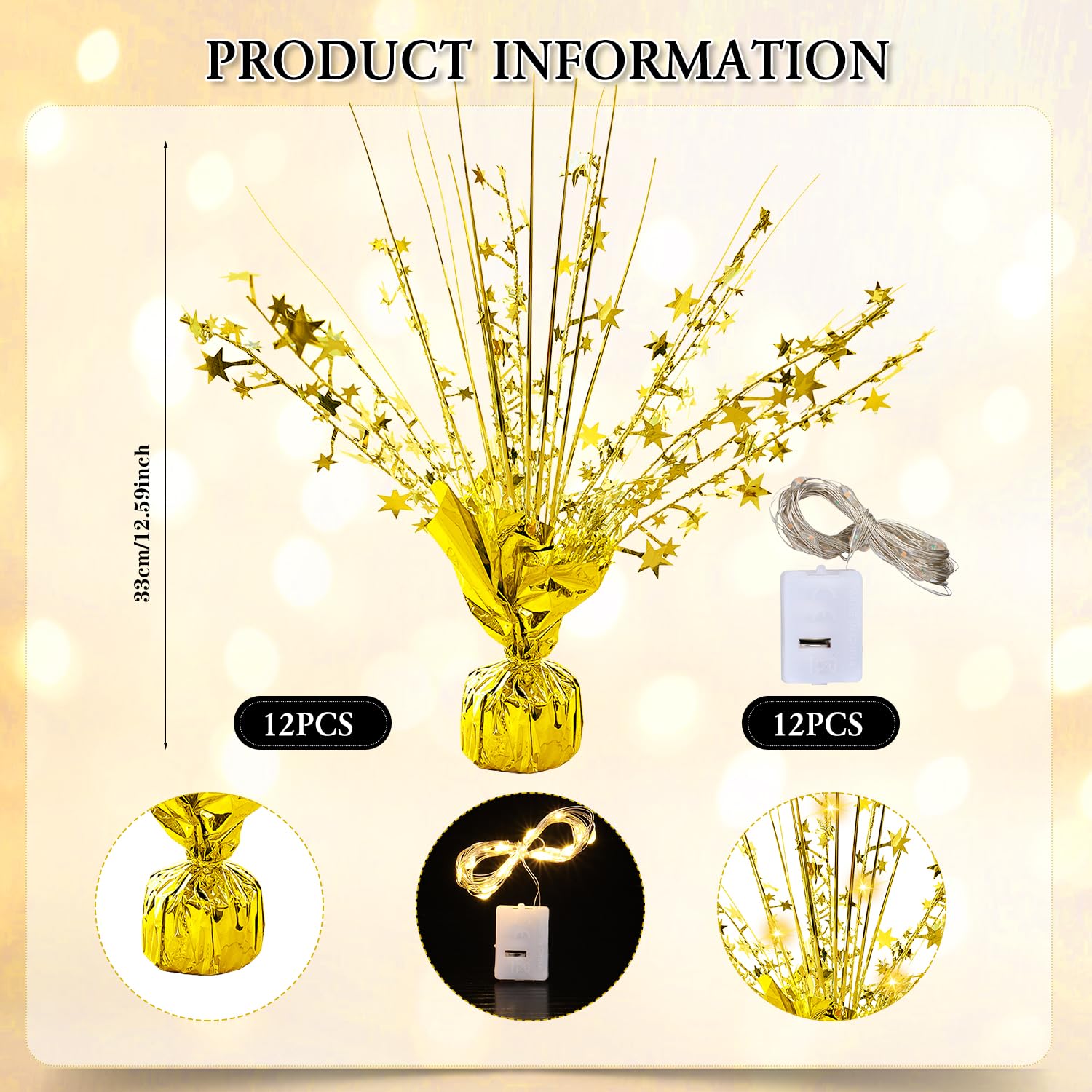 12 Pack Metallic Foil Spray Centerpiece with LED String Lights Star Table Decoration Burst Table Centerpieces for Birthday Graduation Wedding Anniversary Holiday Party Supplies Decor, Gold