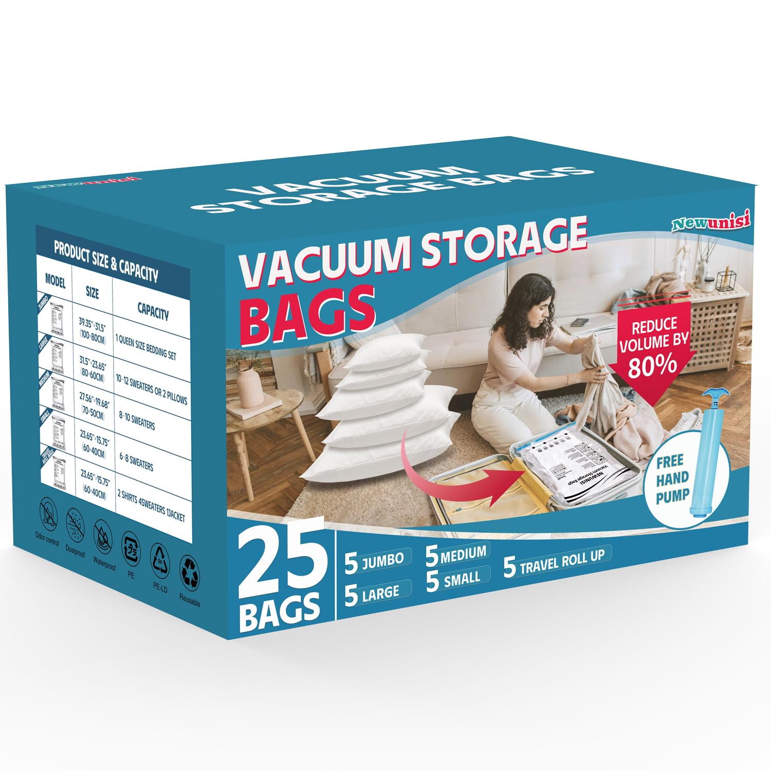 12 Pack Travel Compression Bags - Reusable Travel Space Saver Vacuum Storage Bags for Luggage, Camping, and Storage (No Vacuum or Pump Needed)