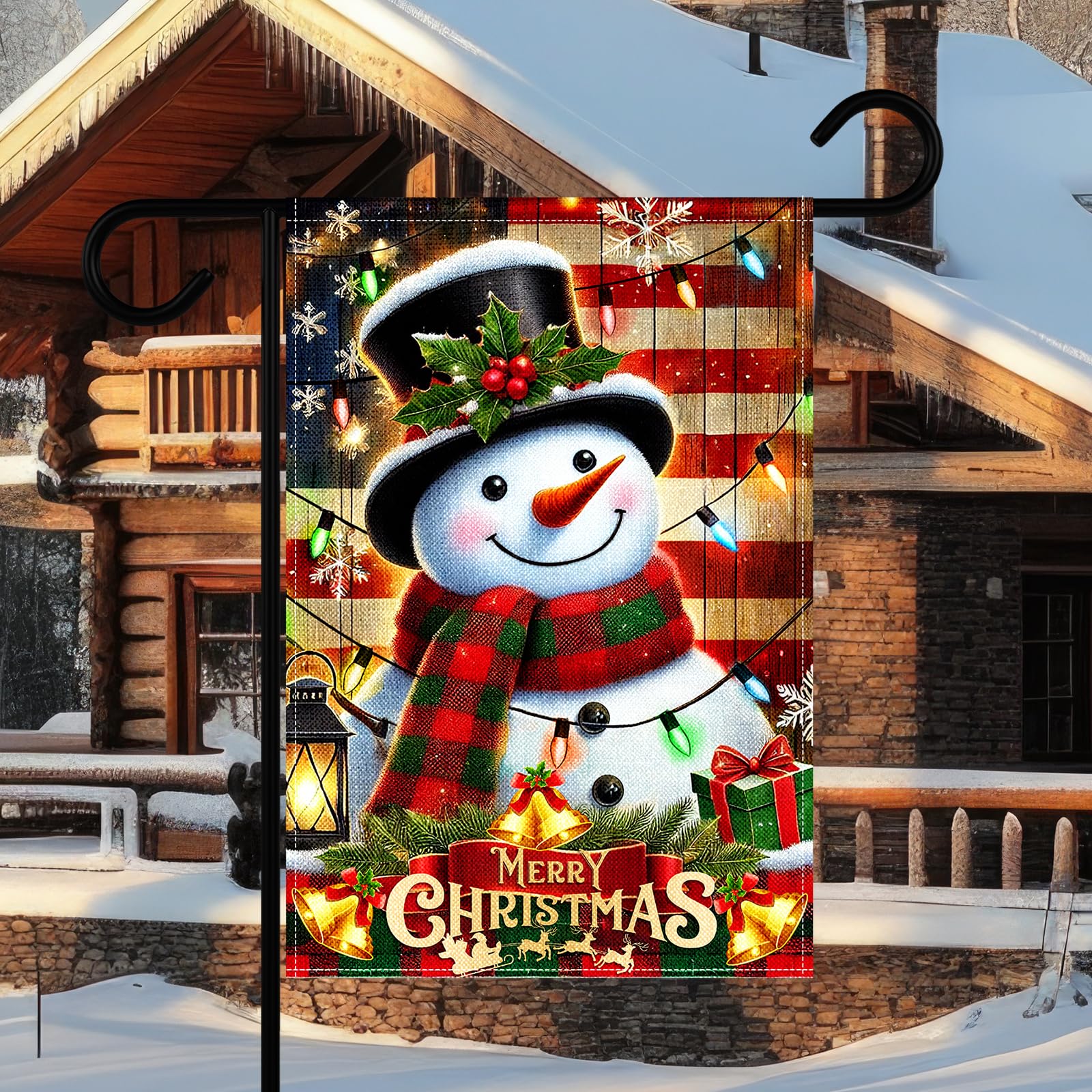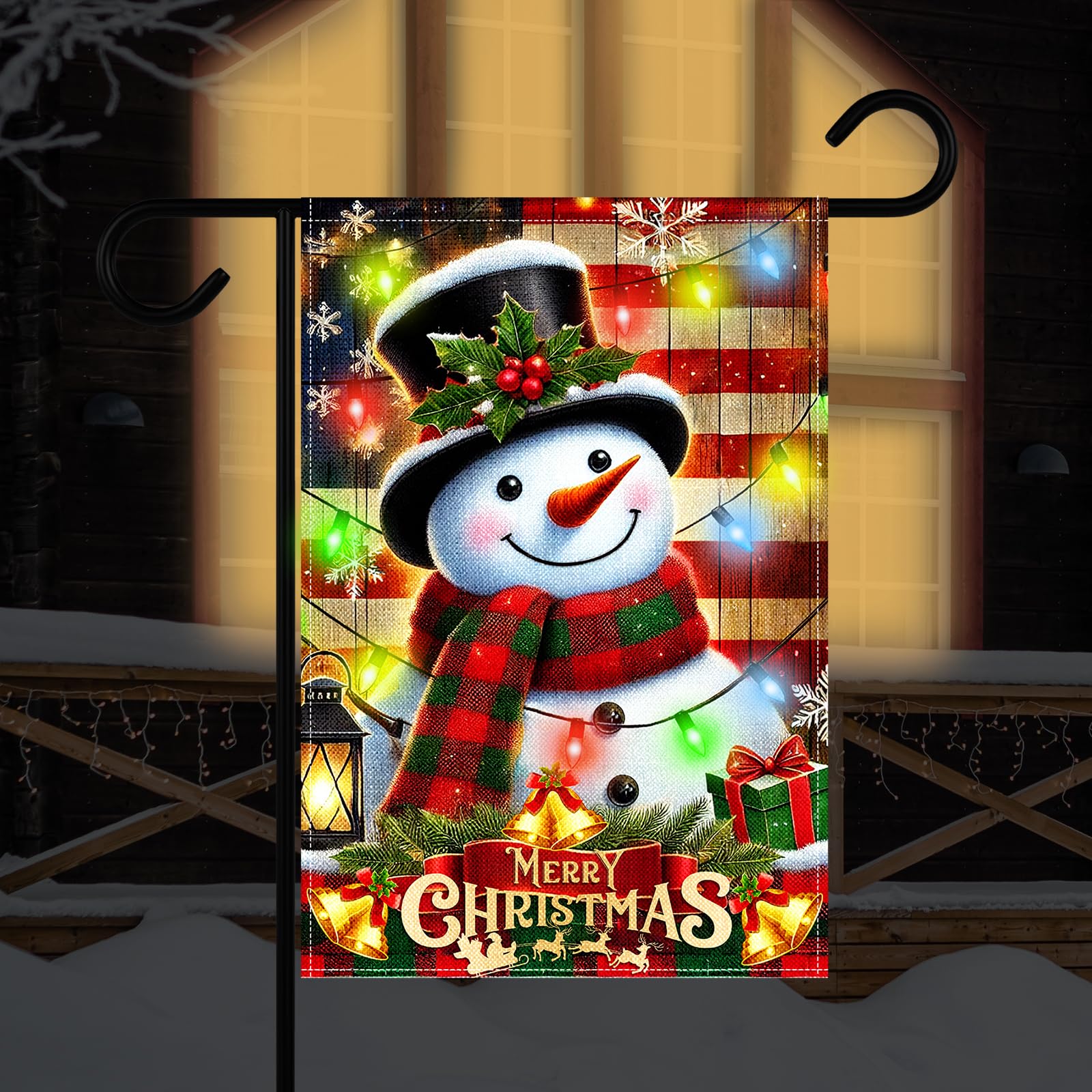 12 x 18 Inches Lighted Snowman Garden Flag Decorations - Double-Sided Vertical Christmas Holiday Yard Flag Sign with LED Lights, Indoor Outdoor House Patio Décor Party Supplies