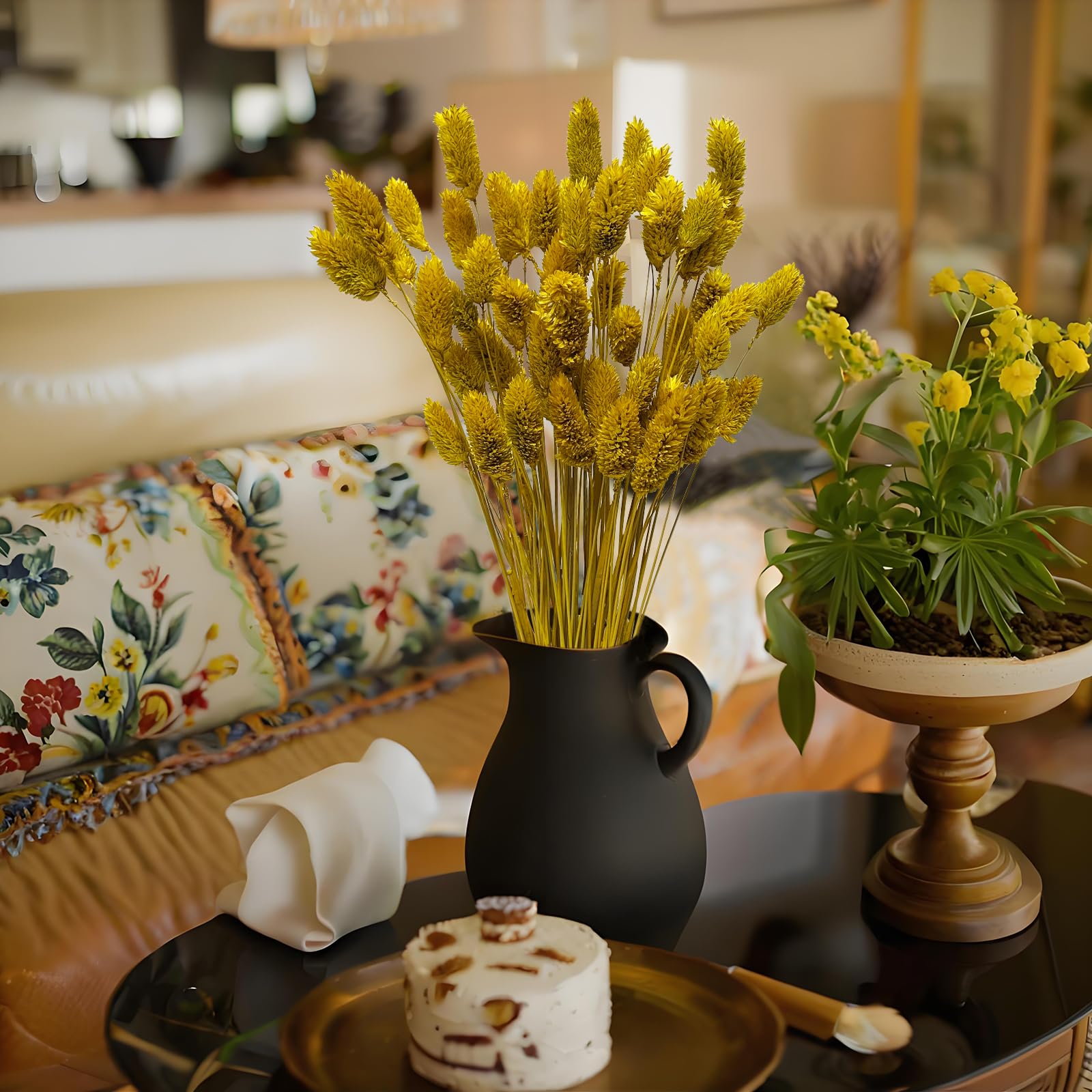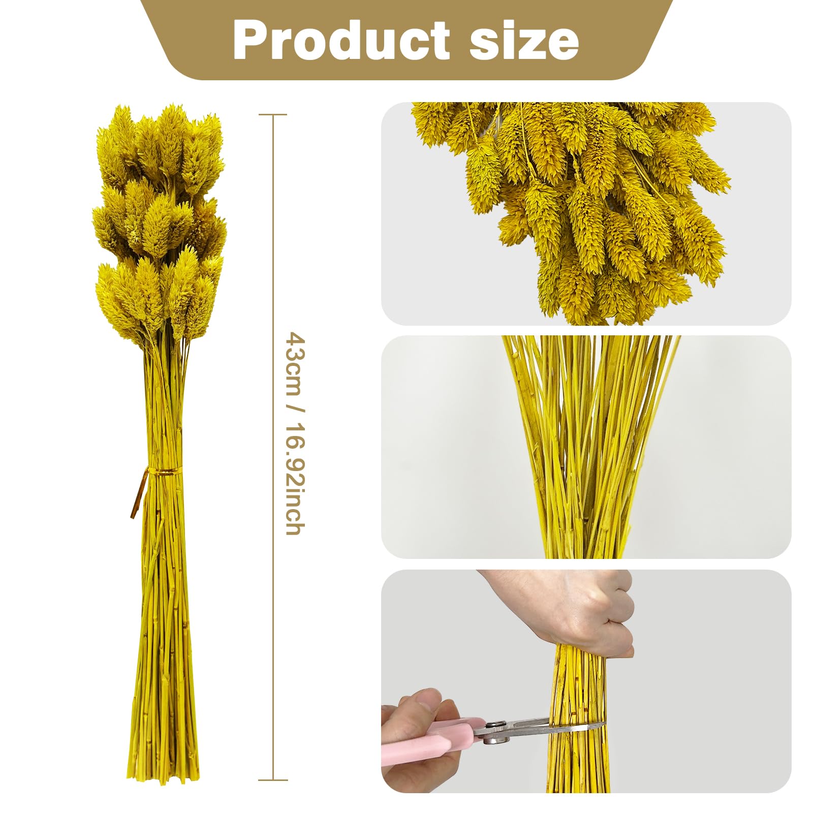 120 PCS Boho Pampas Grass, 17" Bunny Tails Gem Grass Flower Bouquet Decor for Home Wedding Farmhouse Decor (Lemon Yellow)